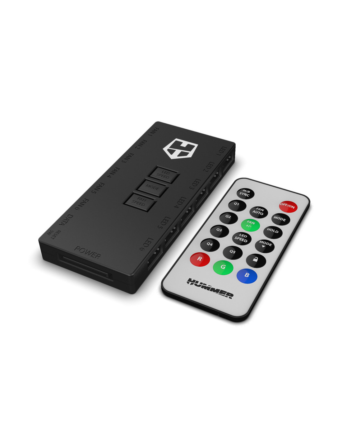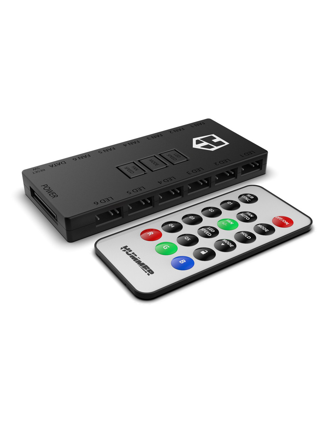 ARGB remote HUBCon el controlador Nox Hummer R-HUB podrás sincronizar seis ventiladores y hasta seis dispositivos ARGB. Este controlador con mando a distancia te permitirá regular la velocidad y los efectos de iluminación de los ventiladores de tu equipo. Totalmente compatible con las mejores marcas de placas base del mercado, como las tecnologías Mystic Light Sync de MSI, RGB Sync de GIGABYTE o Aura RGB Sync de Asus, Nox Hummer R-HUB es la gran solución para controlar la iluminación de todo tu setup al completo.