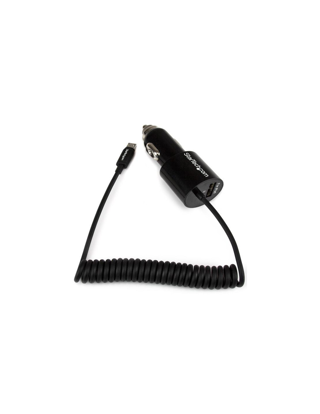 StarTech.com Cargador USB de 2 Puertos para Coche con Cable Micro USB y puerto USB - Negro. Tipo de cargador: Auto, Alimentación: Encendedor de cigarrillos, Compatibilidad del cargador: GPS, Smartphone, Tableta. Voltaje de entrada: 12 ~ 24 V, Voltaje de salida máximo: 5 V. Cantidad de puertos USB 2.0: 1. Color del producto: Negro