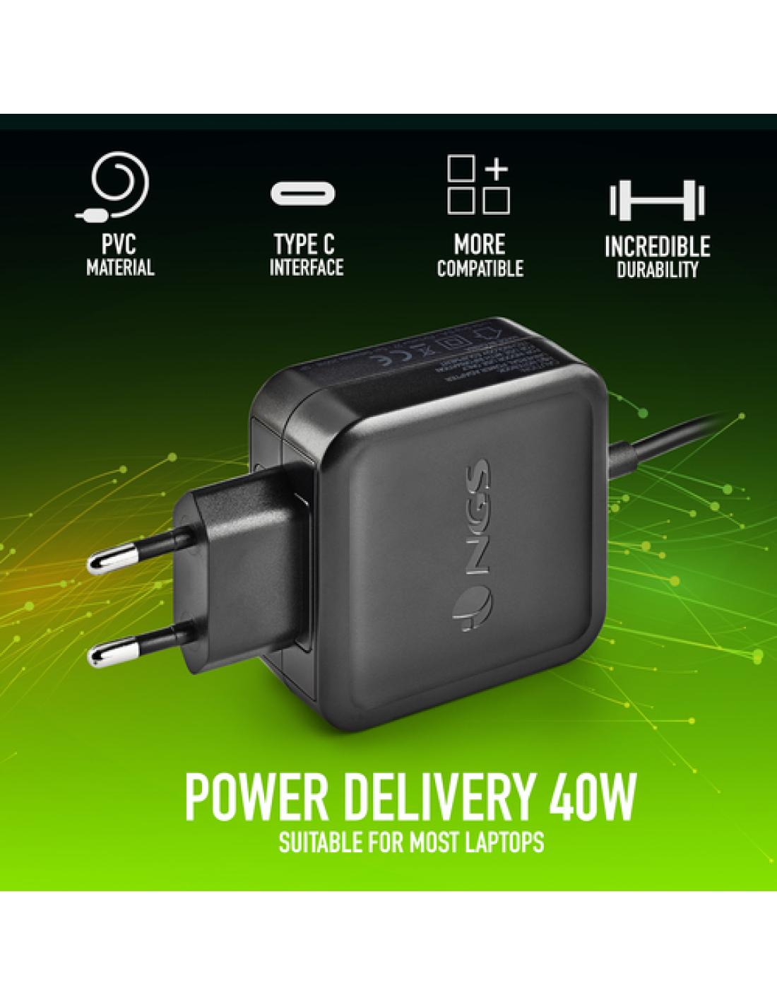NGS W-45W TYPEC Portátil, Smartphone, Tableta Negro Corriente alterna Interior