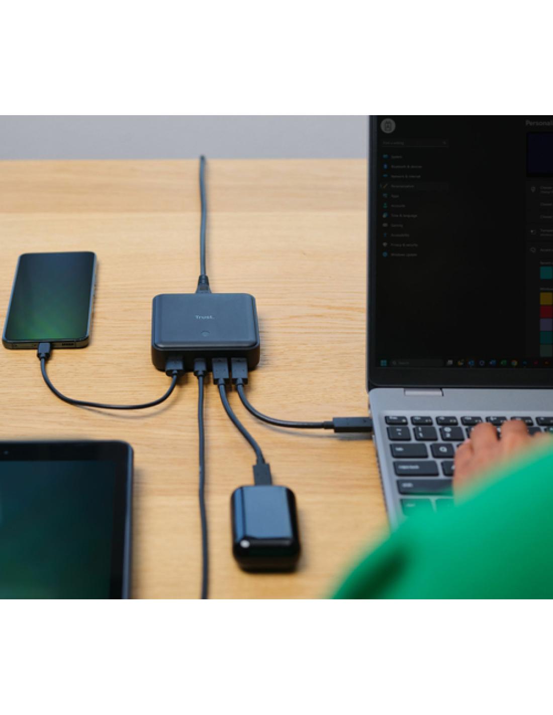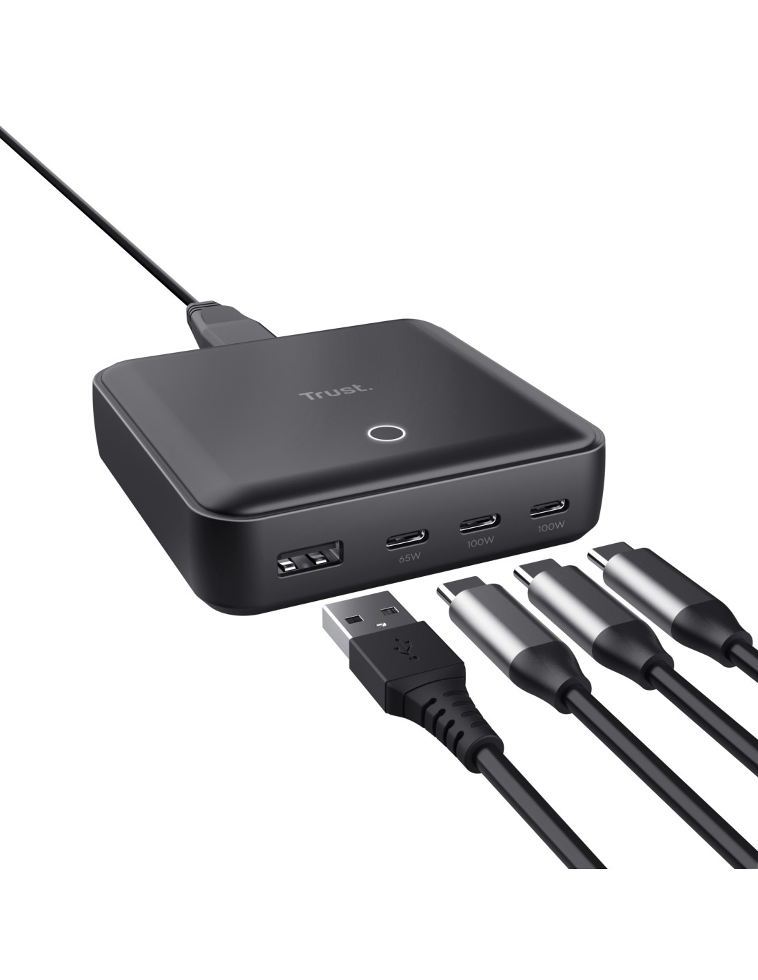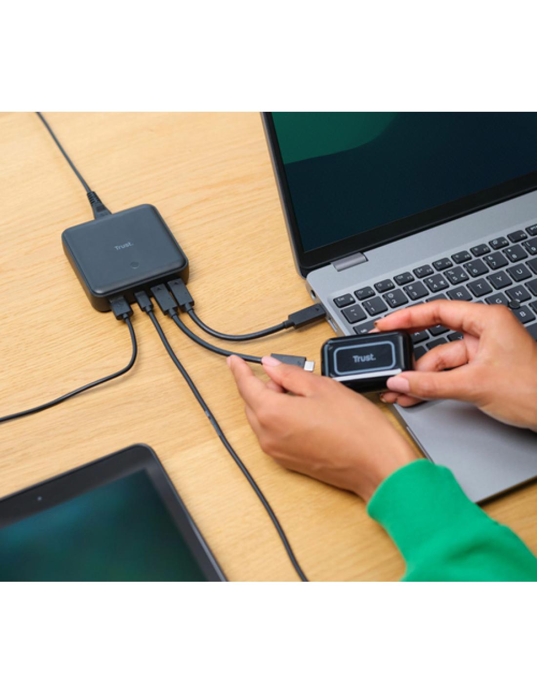 Trust Maxo. Tipo de cargador: Interior, Alimentación: Corriente alterna, Compatibilidad del cargador: Universal. Voltaje de salida máximo: 20 V, Corriente de salida de adaptador AC: 5 A. Cantidad de puertos USB 2.0: 1, Número de puertos USB Tipo C: 3, Funciones de protección de poder: Sobrecalentamiento, Sobrecarga, Cortocircuito. Longitud de cable: 1,2 m, Color del producto: Negro