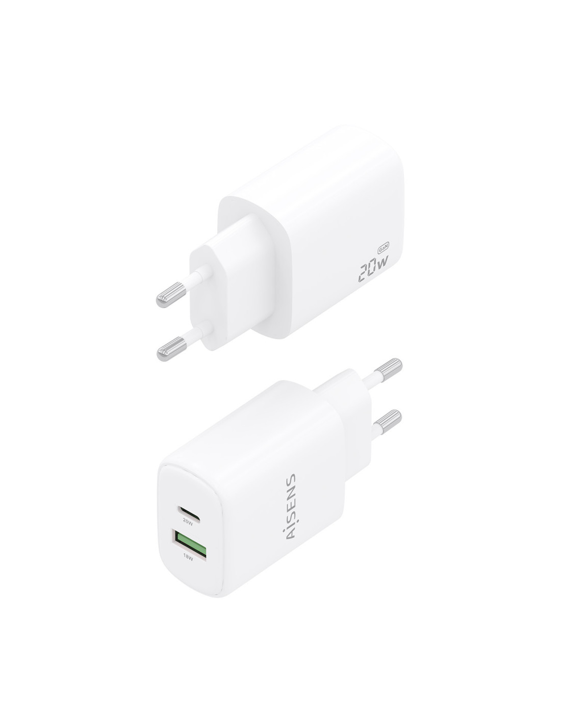 TooQ Cargador de Pared GaN USB-C/PD + USB-A/QC 30W, Blanco
