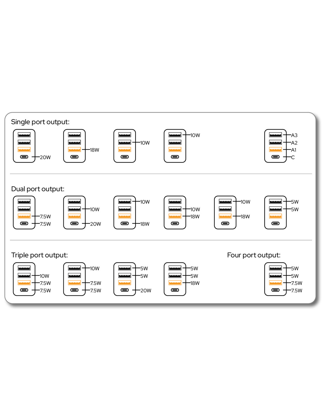 | Potencia de salida del puerto 1 | 20 W |