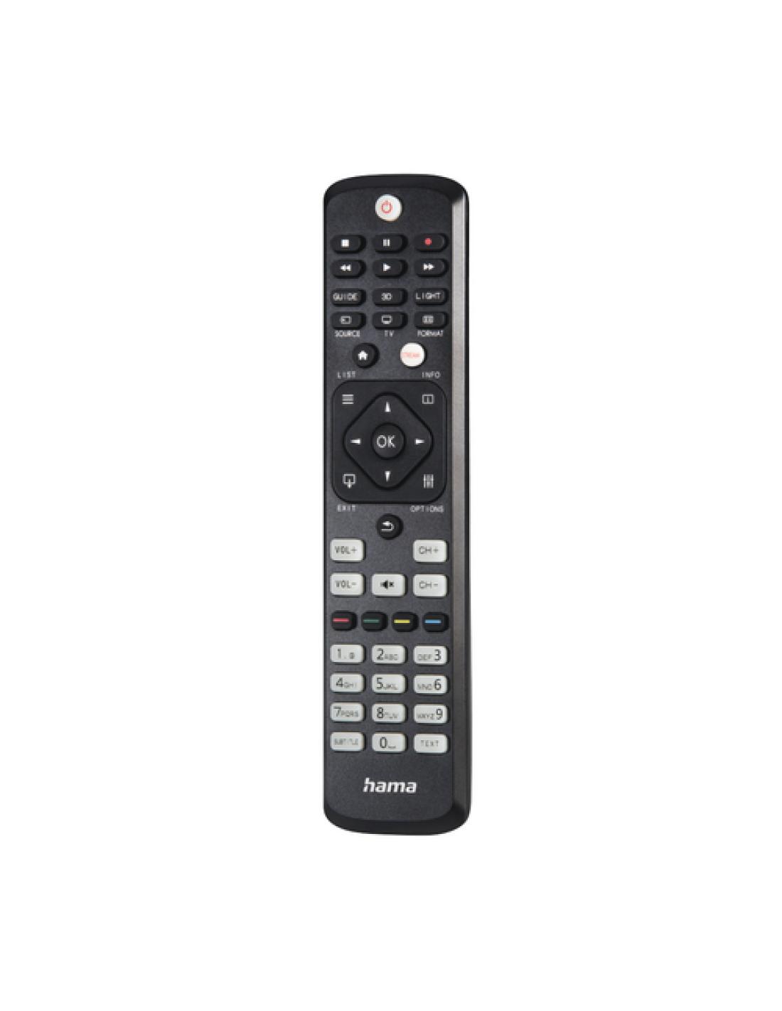 Hama 00221063. Marca compatible: Philips, Uso adecuado del control remoto: TV, Interfaz: IR inalámbrico. Número de dispositivos soportados: 1, Alcance máximo: 10 m. Tipo de entrada: Botones, Cantidad de botones: 46