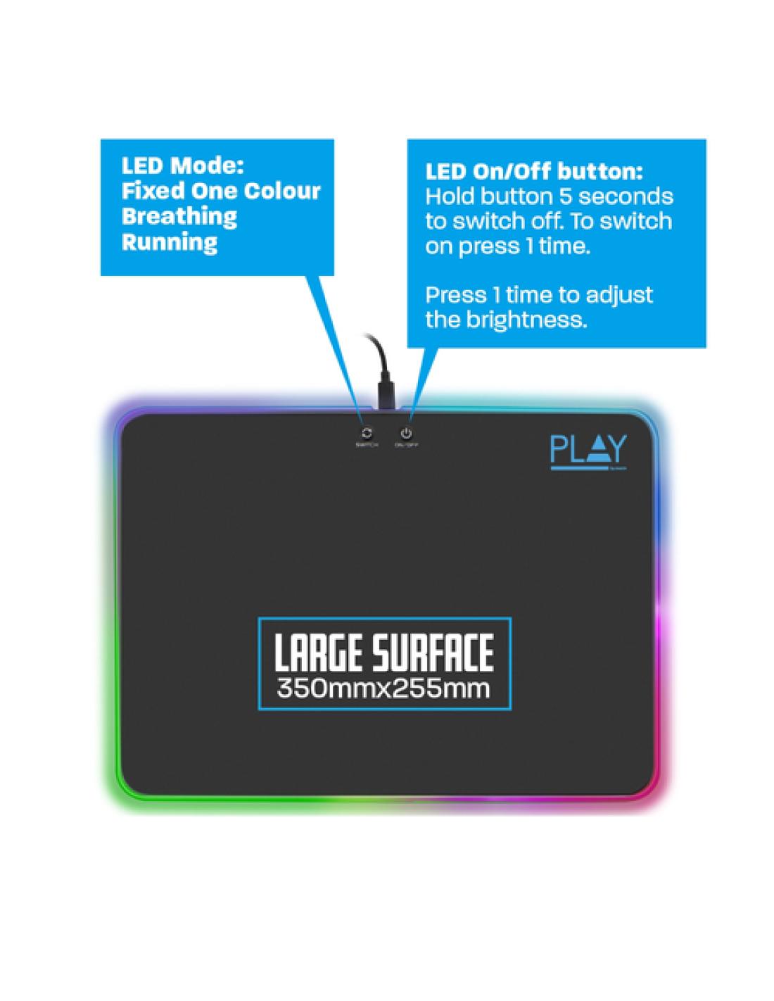 La alfombrilla para ratón de juego con iluminación RGB PL3341 está especialmente diseñada para juegos de alta precisión. Los modos predeterminados de iluminación LED RGB intermitente y de funcionamiento le permiten elegir su efecto de iluminación favorito. Gracias al recubrimiento duro de la superficie, se puede utilizar tanto con ratones ópticos como con ratones láser. La base de goma antideslizante evita que la alfombrilla se deslice.