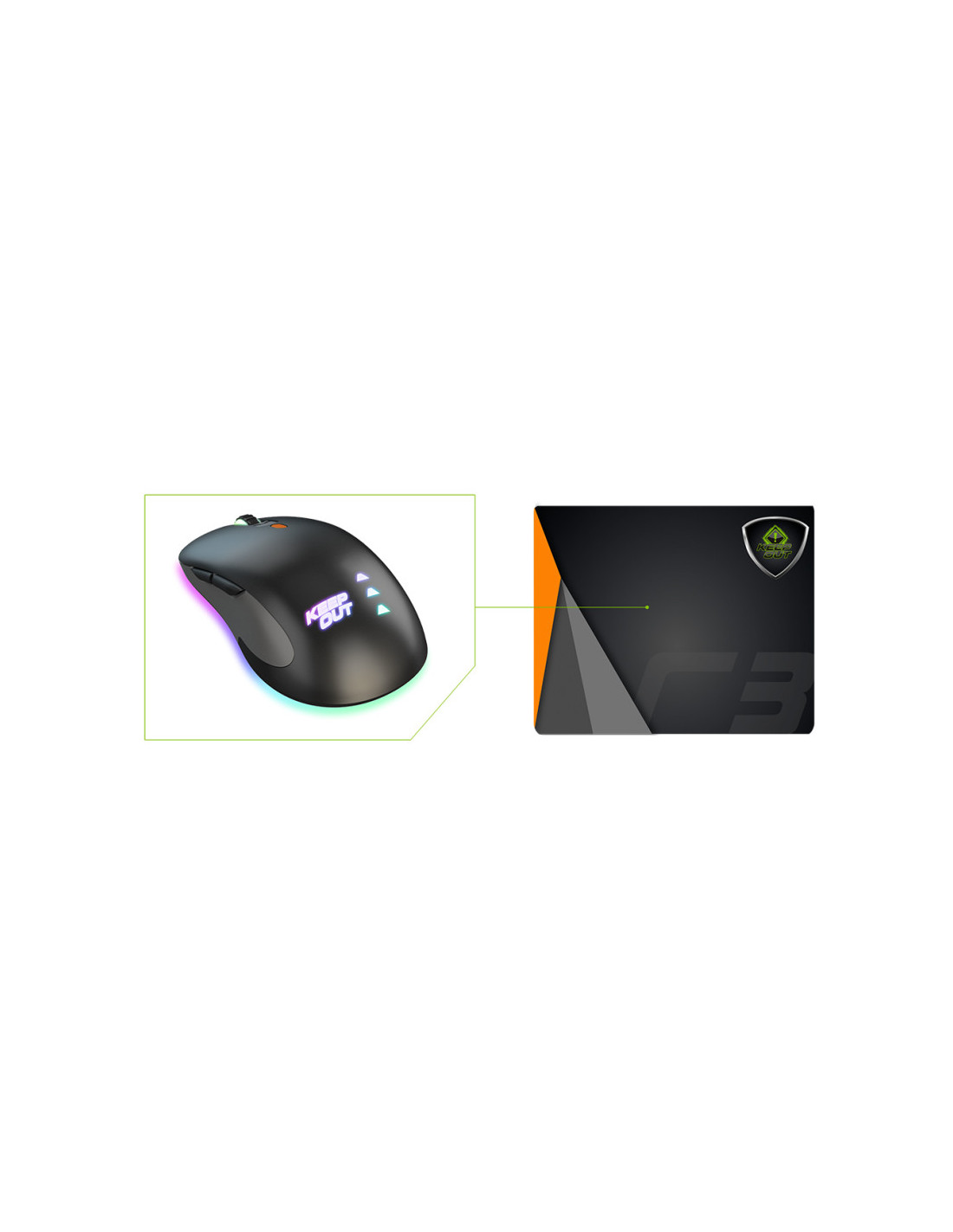 KeepOut R3 alfombrilla para ratón Alfombrilla de ratón para juegos Negro, Verde, Naranja