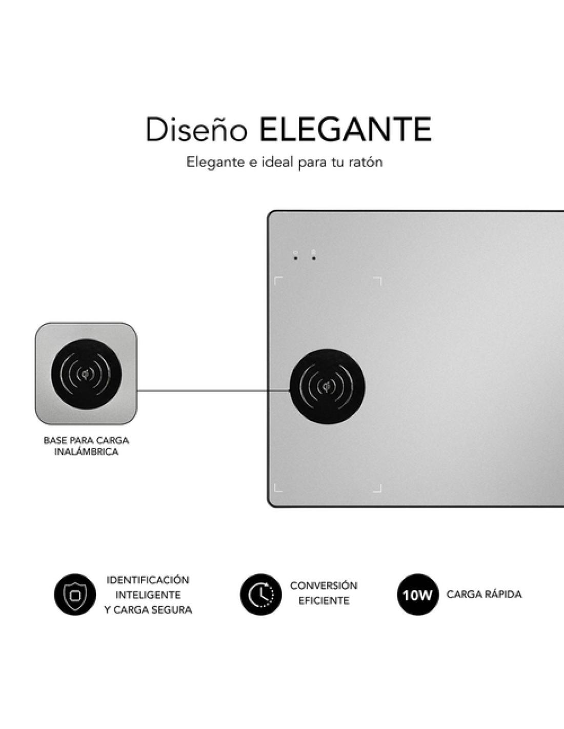 Disfruta de sensaciones Premium con un innovador diseño y superficie de Aluminio anodizado que permite un óptimo desplazamiento del ratón. La parte inferior está fabricada en goma antideslizante para que no se mueva de su lugar. Incorpora una base de carga inalámbrica para dispositivos móviles (Android, Apple y Windows Phone) y ratones compatibles con carga rápida por inducción de hasta 10W