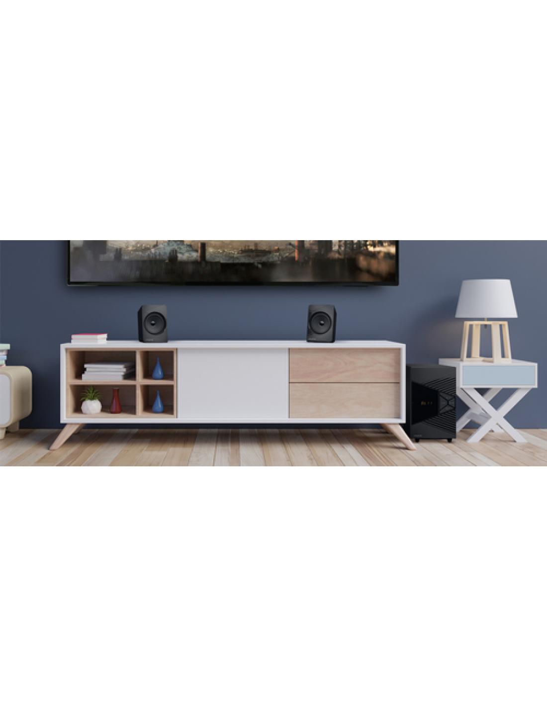 Un sistema de altavoces 2.1 Bluetooth de alto rendimiento que ofrece un rendimiento de audio alto e impresionante con 30 W de RMS y hasta 60 W de pico máximo de potencia. Los altavoces llevan unos drivers con sintonización personalizada y campo lejano para producir una experiencia de audio sorprendente.