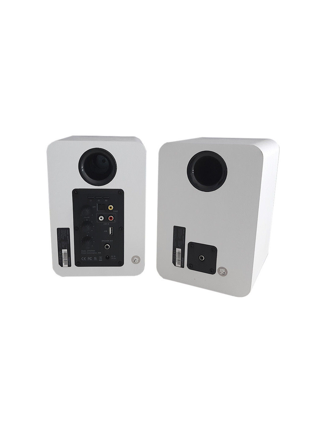 El APPSPK02BK es una pareja de altavoces autoamplificados (activo y pasivo) con una potencia de 60W RMS, conectividad bluetooth, carcasa de madera y un diseño muy elegante.