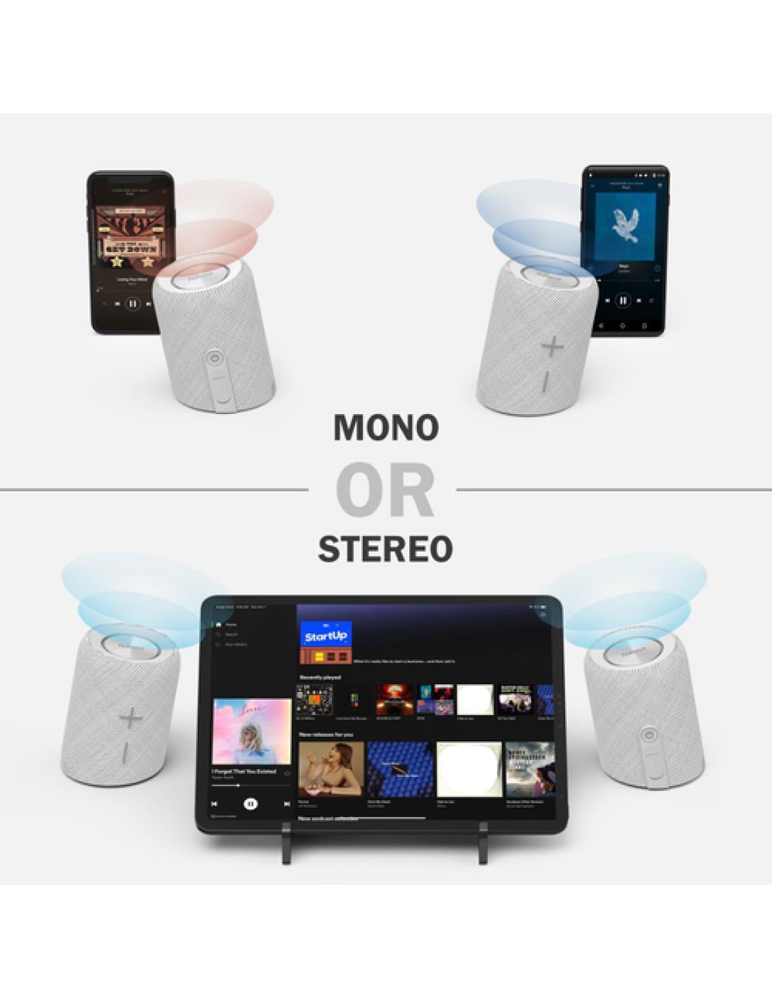 Disfruta de una experiencia sonora envolvente con 30 vatios de potencia musical (2 x 15 W). El altavoz Bluetooth Twin 3.0 se divide en dos unidades individuales, que puedes usar juntas para lograr un auténtico sonido estéreo sincronizado o por separado para ambientar distintos espacios al mismo tiempo. Ideal para música, películas y juegos gracias a su función True Wireless Stereo (TWS).