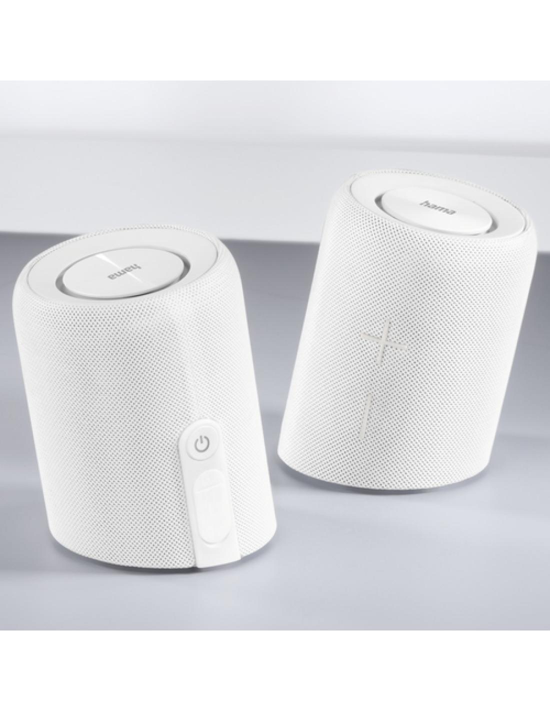 Hama Twin 3.0. Canales de salida de audio: 2.0 canales. Potencia estimada RMS: 30 W, THD, distorción armónica total: 1%. Tecnología de conectividad: Inalámbrico, alcance Bluetooth: 10 m. Tipo de producto: Altavoz portátil estéreo, Color del producto: Blanco, Diseño de producto: Tubo. Uso recomendado: Teléfono móvil/Smartphone