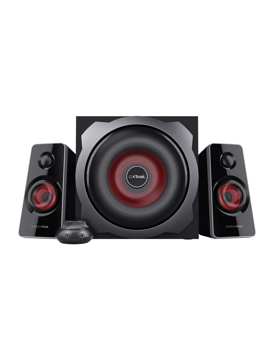 Si se utiliza la potencia máxima de 120 vatios, los GXT 38 pueden construir una verdadera cortina de sonido. Estos altavoces incluyen un subwoofer de madera XL con un altavoz de 7" que produce unos bajos potentes y penetrantes. Los altavoces satélite producen una calidad del sonido excepcional en los tonos medios y altos. En el lateral del subwoofer se incluyen mandos a través de los cuales podrá controlar fácilmente el nivel de los bajos por separado, lo que le permitirá ajustar el sonido a su gusto.
