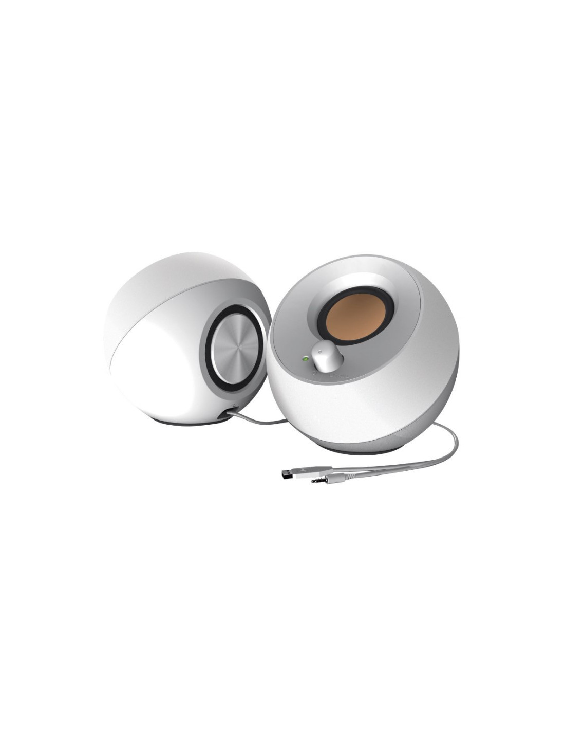 Midiendo solo 4.4 pulgadas de anchura cada uno, el Creative Pebble puede colocarse convenientemente junto a su monitor sin comprometer el valioso espacio de su escritorio. Además, el Creative Pebble está convenientemente potenciado por un solo cable USB sin necesidad de un enchufe en la pared.