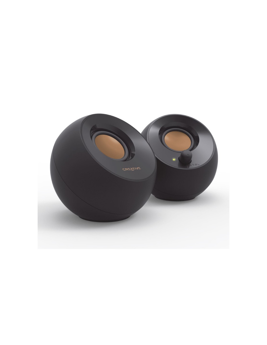¿No tiene espacio en el escritorio? No hay problemaMidiendo solo 4.4 pulgadas de anchura cada uno, el Creative Pebble puede colocarse convenientemente junto a su monitor sin comprometer el valioso espacio de su escritorio. Además, el Creative Pebble está convenientemente potenciado por un solo cable USB sin necesidad de un enchufe en la pared.