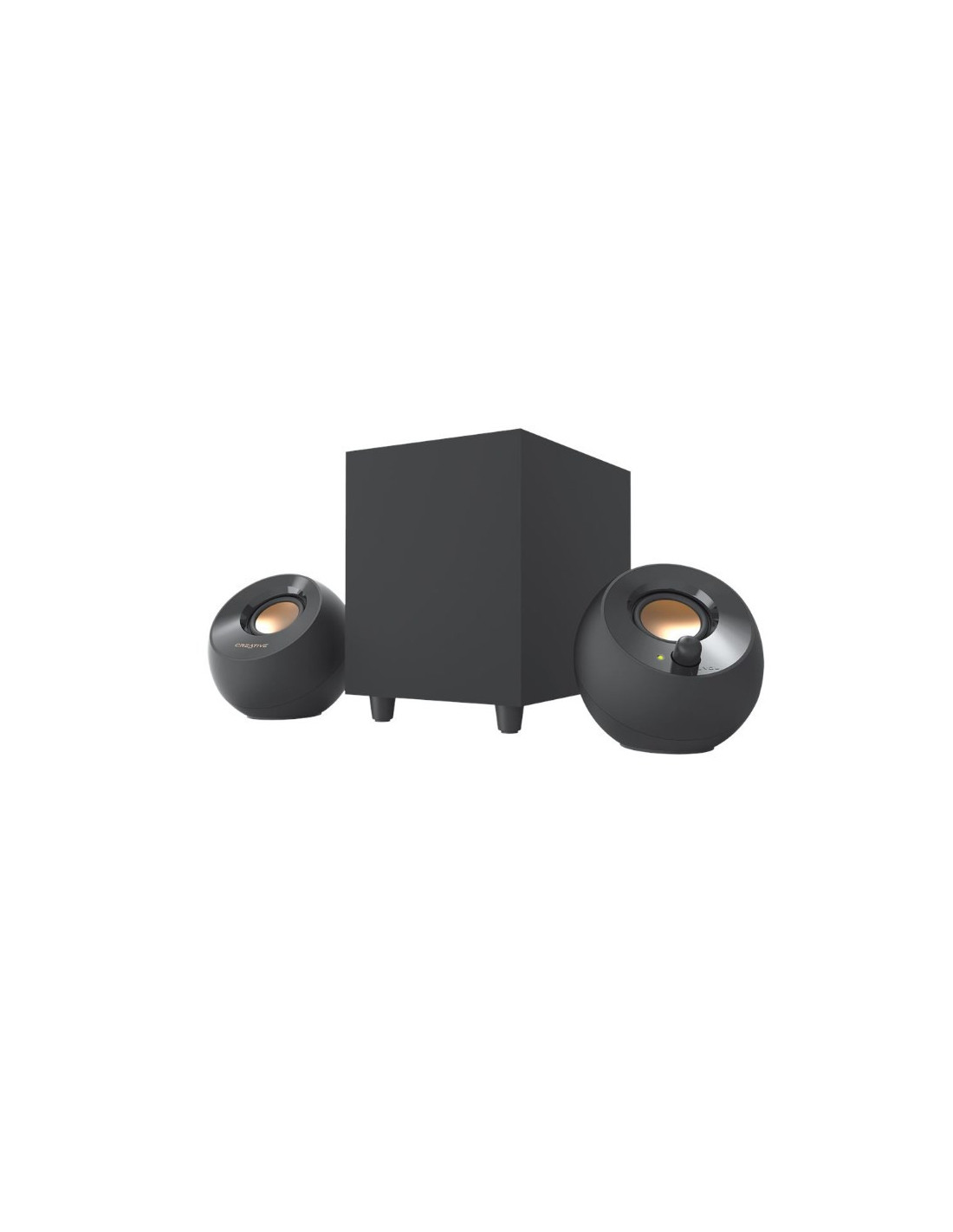 Creative Labs Creative Pebble Plus. Canales de salida de audio: 2.1 canales, Potencia estimada RMS: 8 W, Uso recomendado: Hogar. Relación señal/ruido (SNR): 75 dB. Ancho: 122 mm, Profundidad: 115 mm, Altura: 116 mm. Tecnología de conectividad: Alámbrico, Auriculares: 3,5 mm. Tipo de embalaje: Caja