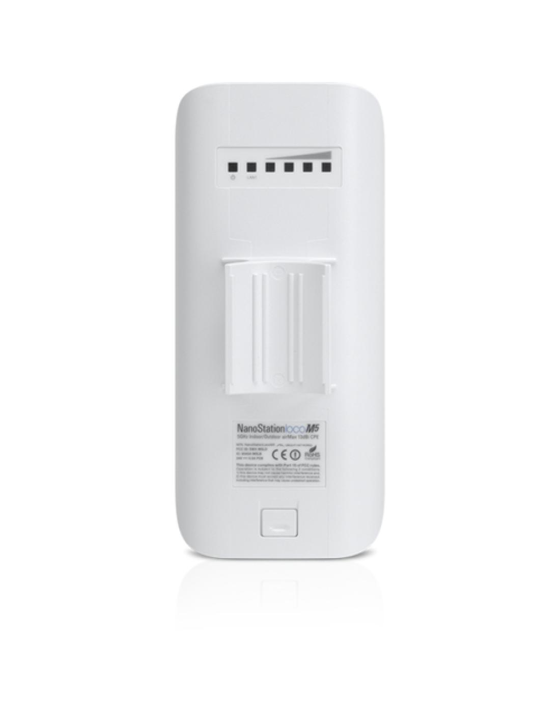 Ubiquiti LocoM5. Rango máximo de transferencia de datos: 150 Mbit/s. Diseño de la antena: Interno, Ganancia de la antena (max): 13 dBi. Banda Wi-Fi: Banda única (5 GHz), Frecuencia de banda: 5.17 - 5.875 GHz. Tipo de interfaz Ethernet LAN: Ethernet rápido, Ethernet LAN, velocidad de transferencia de datos: 10,100 Mbit/s, Estándares de red: IEEE 802.3, IEEE 802.3u. Tecnología de conectividad: Inalámbrico y alámbrico