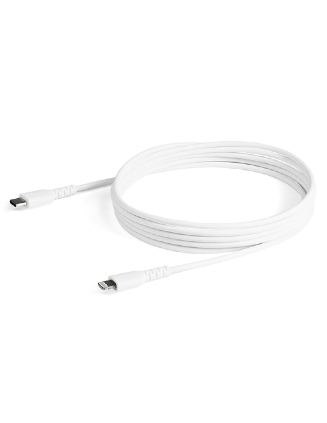 Este cable USB C blanco de 2m a Lightning soporta las exigencias diarias de carga y sincronización de su iPad, iPhone u otros dispositivos móviles con conector Lightning. Probado para soportar el desgaste extenuante y el uso en invierno y verano en el coche, el cable fuerte y resistente es un elemento imprescindible tanto para aplicaciones de negocios como de consumo.