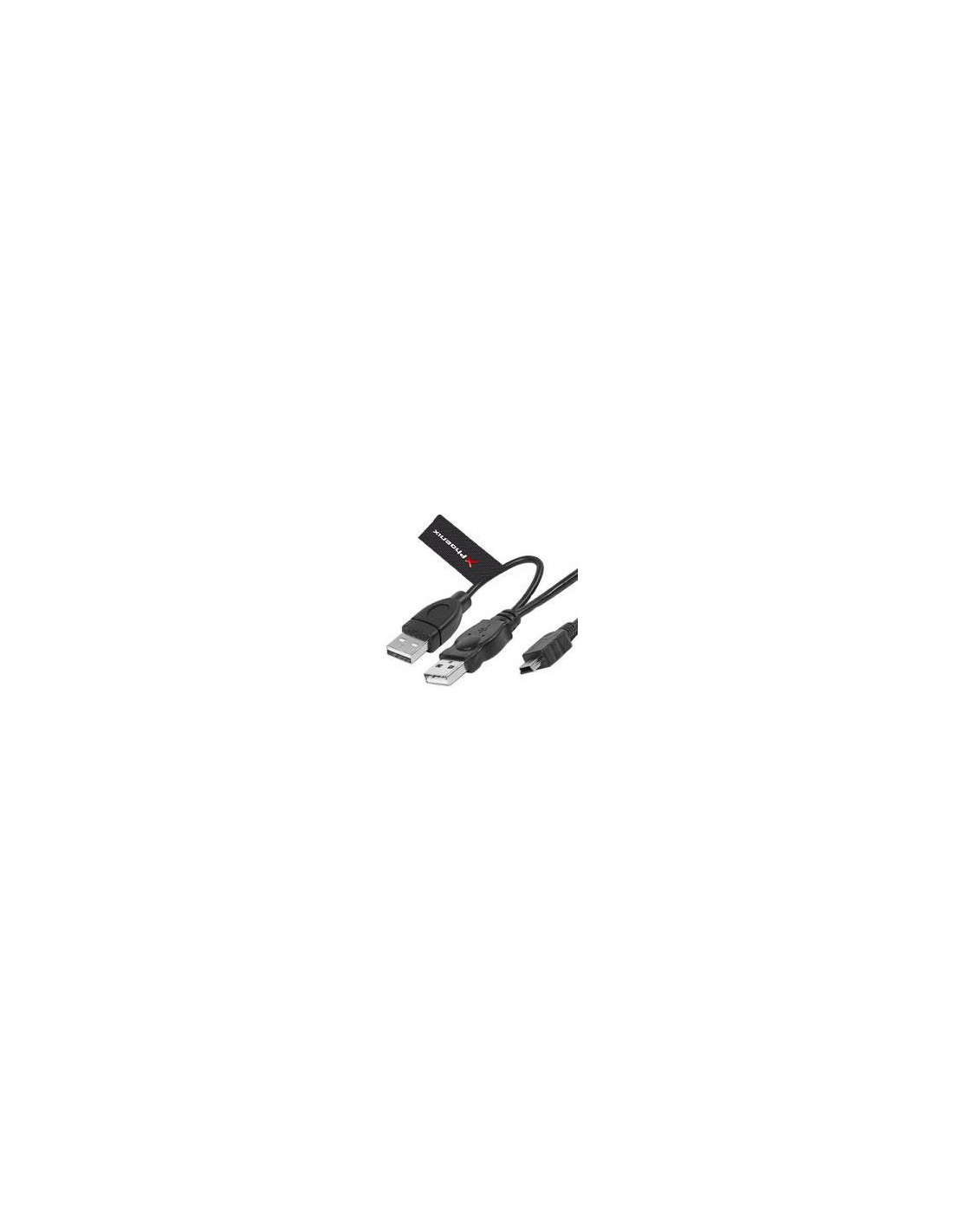 Phoenix Technologies 1.5m 2 x USB/Mini USB. Longitud de cable: 1,5 m. Conector 1: Mini-USB B, Conector 2: 2 x USB, Versión USB: USB 2.0, Género del conector: Macho/Macho, Tasa de transferencia (máx): 0,48 Gbit/s, Color del producto: Negro