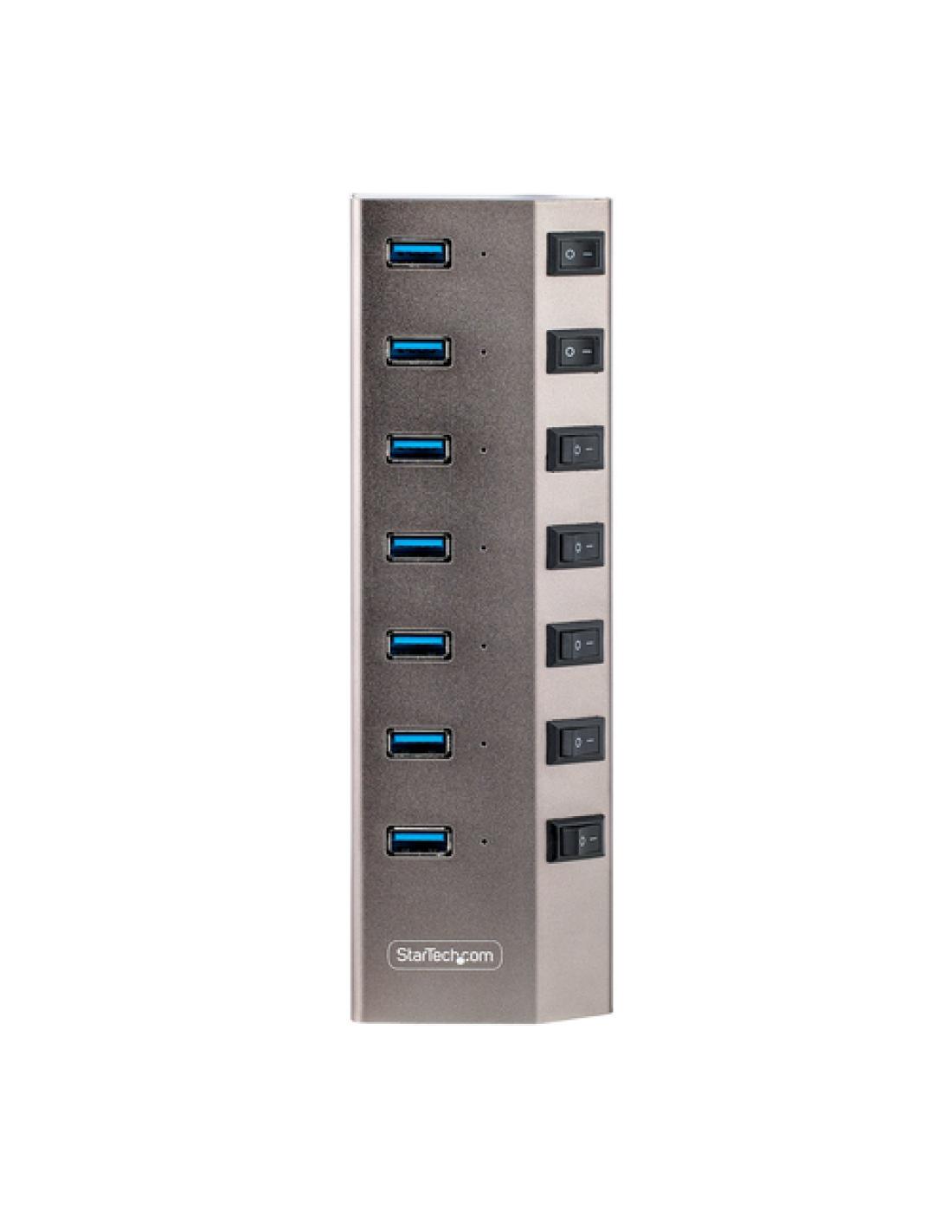 Hub USB de 7 puertos | Interruptores individuales de Encendido/Apagado para Puertos | USB 3.2 Gen 1 (5Gbps) | Cables USB-C y USB-A de 1m incluidos