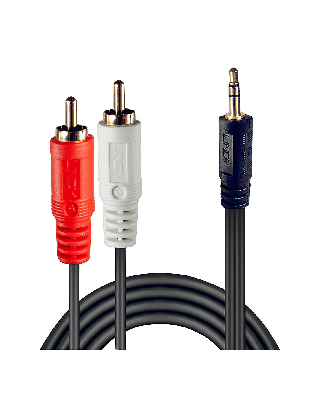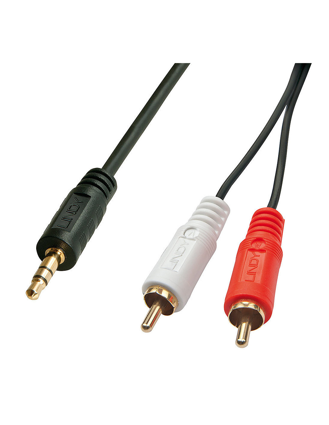 Lindy 35685. Conector 1: 2 x RCA, Género del conector 1: Macho, Conector 2: 3,5mm, Género del conector 2: Macho, Contactos del conector chapado: Oro, AWG calibre del cable: 28, Longitud de cable: 10 m, Color del producto: Negro