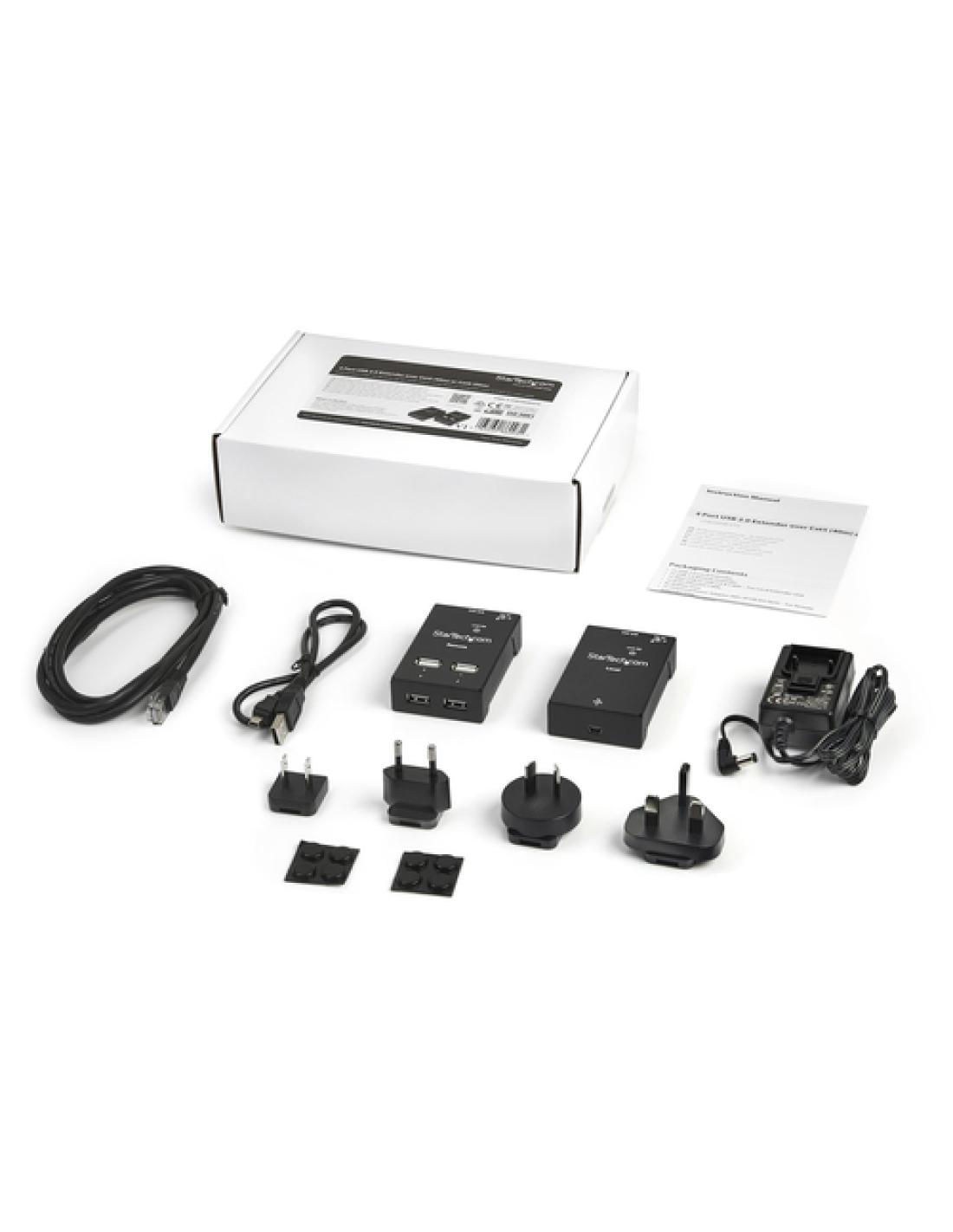 StarTech.com Extensor Alargador USB 2.0 de 4 Puertos por Cable Cat5 o Cat6 - Extensor Compacto USB 2.0 por Ethernet - Hasta 40 Metros - Hub Ladrón USB 2.0 Remoto. Ancho: 52 mm, Profundidad: 80 mm, Altura: 22 mm. Cables incluidos: LAN (RJ-45), USB. Consumo de energía (max): 10 W, Voltaje de entrada: 100 - 240 V, Corriente de entrada: 0.4 A. Ancho de la caja principal: 324 mm, Longitud de la caja: 402 mm, Alto de la caja principal: 258 mm