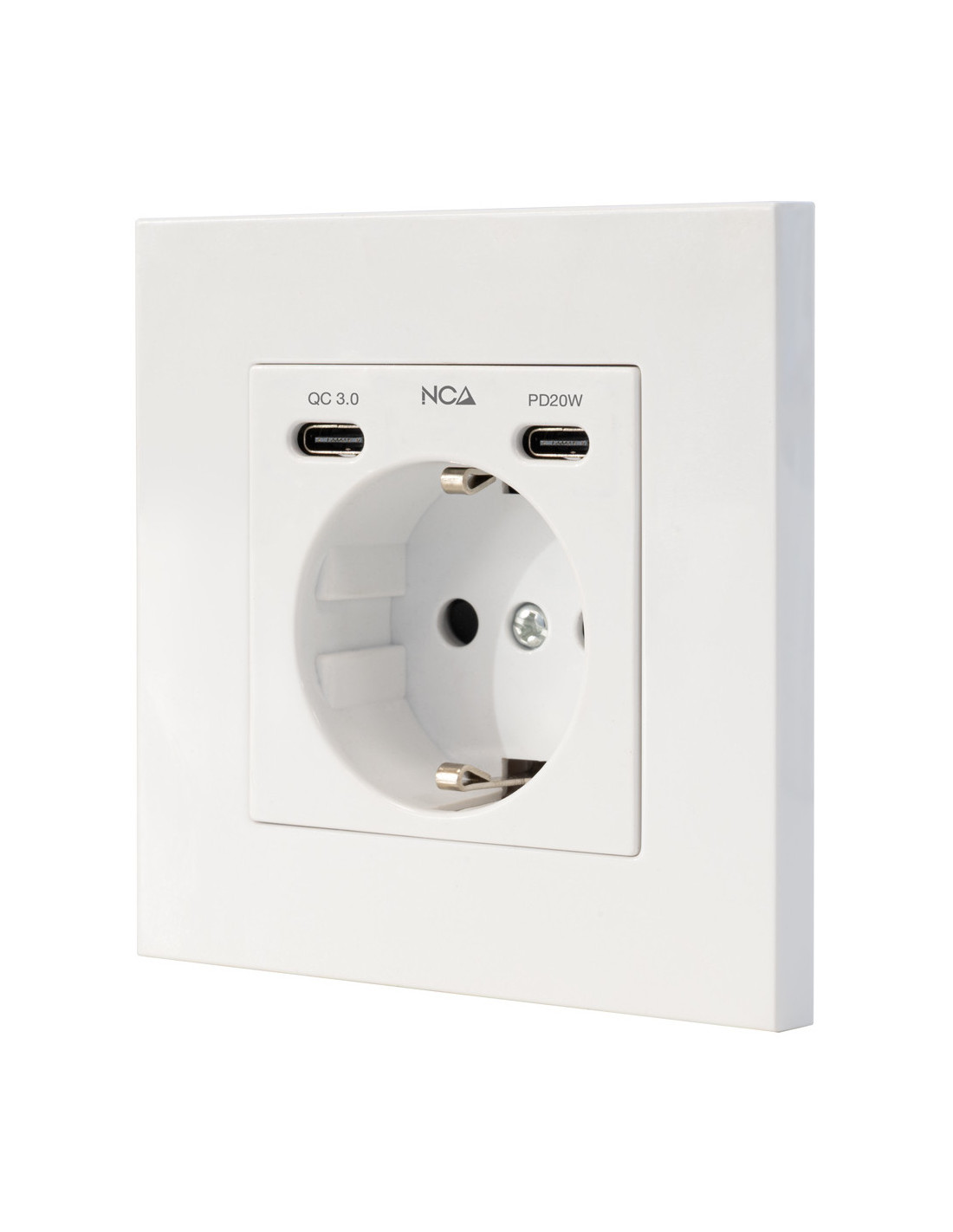 Base de enchufe de pared tipo schuko con 2 tomas USB-C, QC 3.0 y PD 20W