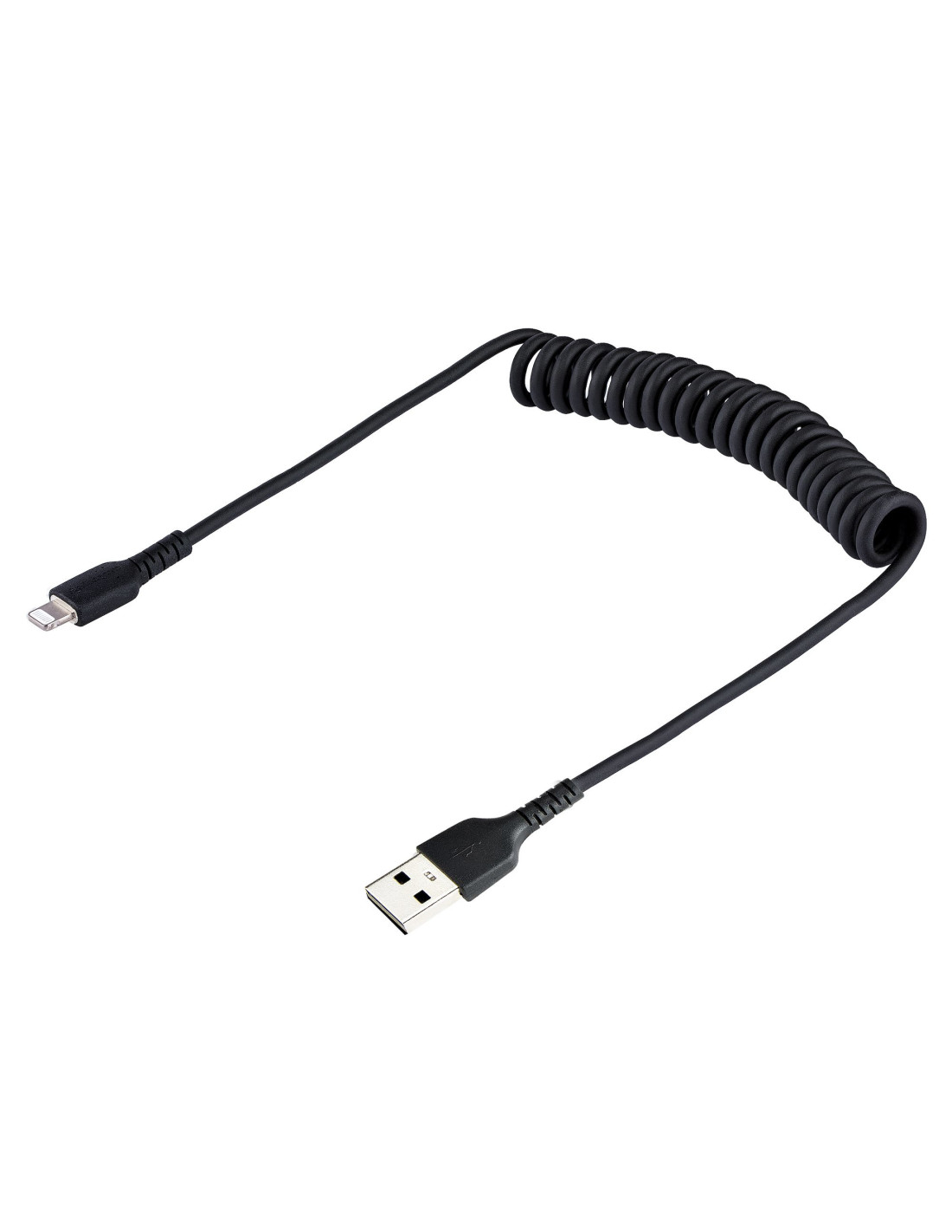 StarTech.com Cable 50cm USB a Lightning con Certificación MFi, Cable Rizado de Carga para iPhone, Negro, con Recubrimiento de TPE, Núcleo de Fibra de Aramida, Cable Lightning Rizado. Longitud de cable: 0,5 m, Conector 1: Lightning, Conector 2: USB A. Certificados de conformidad: CE, RoHS. Diámetro de cable: 3,1 mm, Peso: 28 g. Cantidad por paquete: 1 pieza(s), Ancho del paquete: 223 mm, Profundidad del paquete: 127 mm. Ancho de la caja principal: 380 mm, Longitud de la caja: 430 mm, Alto de la caja principal: 290 mm