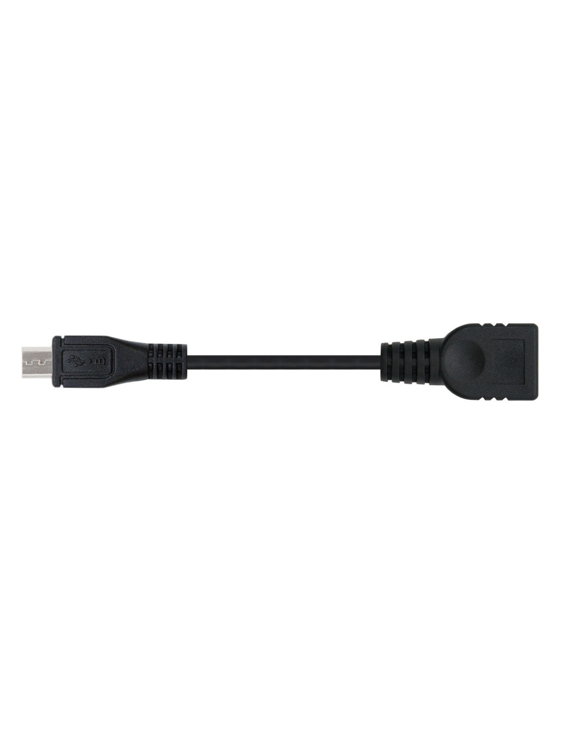 - Cable USB 2.0 OTG con conector tipo Micro USB B macho en un extremo y tipo USB A hembra en el otro