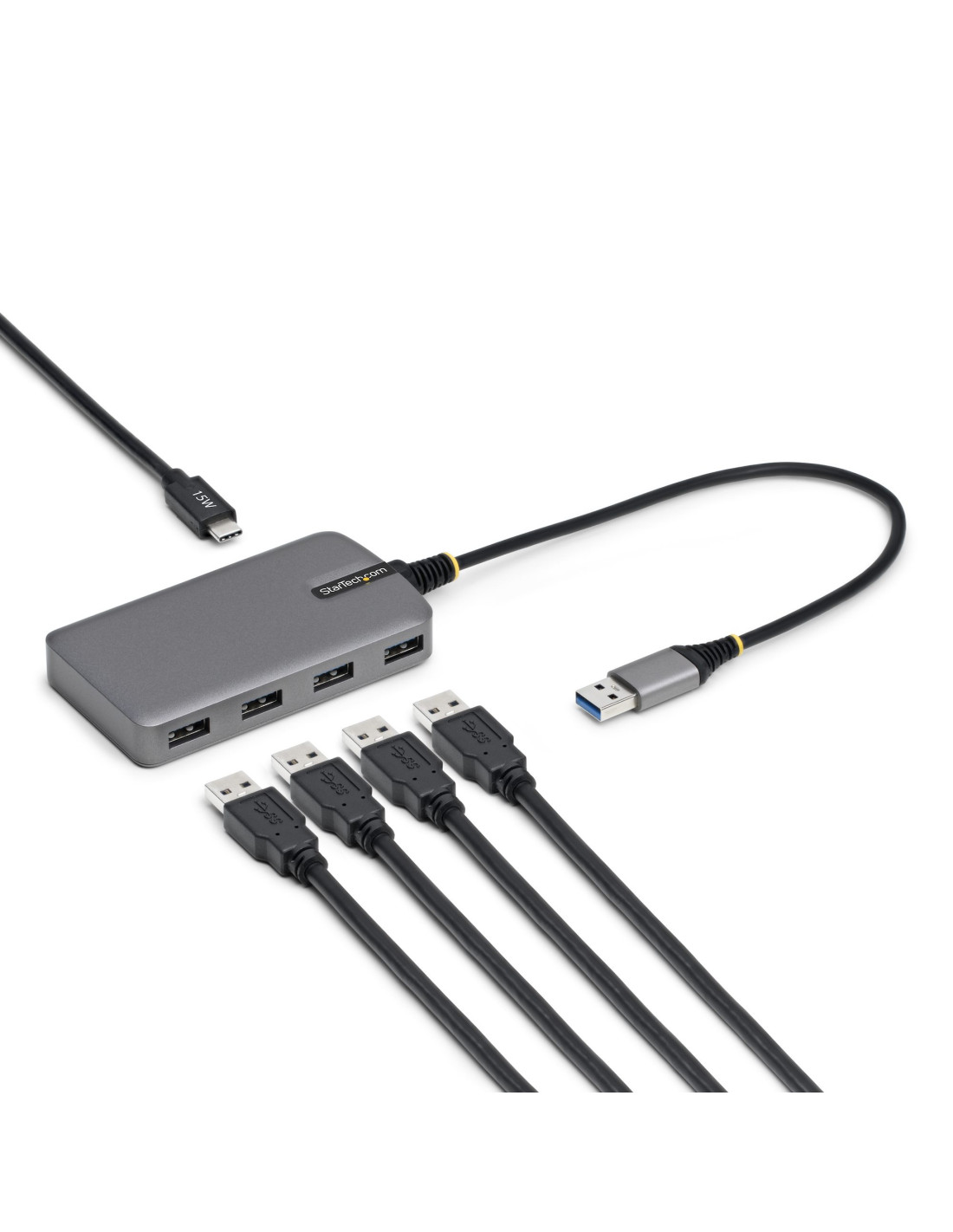 StarTech.com Hub USB-A de 4 Puertos - Ladrón USB USB-A - USB-A a 4x USB-A - Concentrador USB 3.0 Portátil de 5Gbps - Alimentado por el Bus - Salida Auxiliar de Alimentación USB Tipo C - Cable de 30cm. Interfaz de host: USB 3.2 Gen 1 (3.1 Gen 1) Type-A, Interfaces de concentradores: USB 3.2 Gen 1 (3.1 Gen 1) Type-A, USB Tipo C. Velocidad de transferencia de datos: 5000 Mbit/s, Color del producto: Gris, Material de la carcasa: Plástico. Tipo de fuente de alimentación: USB. Otros sistemas operativos soportados: ChromeOS. Ancho: 54 mm, Profundidad: 420 mm, Altura: 16 mm