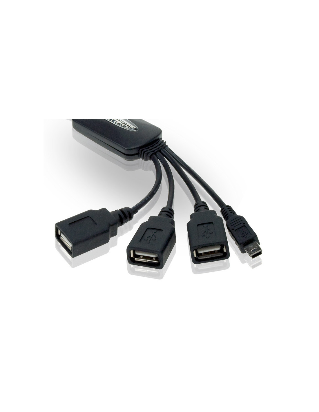 Con este Hub USB 2.0 de 4 puertos alimentado y flexible podrá añadir fácilmente 4 puertos USB multiflexibles extra a su ordenador o portátil. Podrá conectar varios dispositivos USB como lápices de memoria, cámaras digitales, lectores de tarjetas o ratones a su ordenador o portátil, incluso dispositivos que requieran más alimentación eléctrica como por ejemplo un disco duro de 2,5” externo. El CFLEXHUB le proporcionará 3 conexiones USB 2.0 B hembras y 1 conexión mini USB B macho.