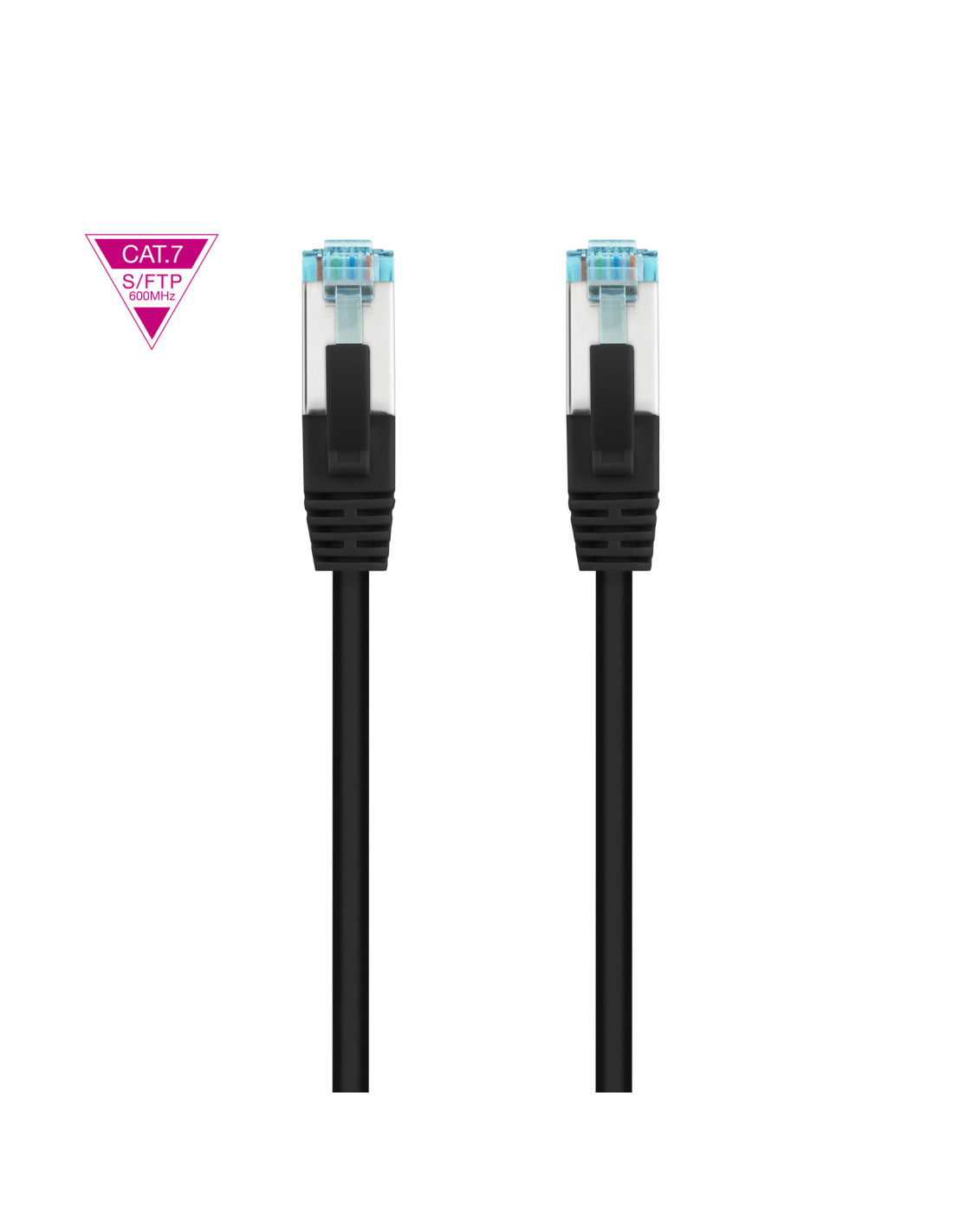 Nanocable Cable de Red Cat.7 600MHZ LSZH SFTP PIMF AWG26, Negro, 1 m. Longitud de cable: 1 m, Cable estándar: Cat7, Blindaje de cable: SF/UTP (S-FTP), Conector 1: RJ-45, Conector 2: RJ-45, Color del producto: Negro