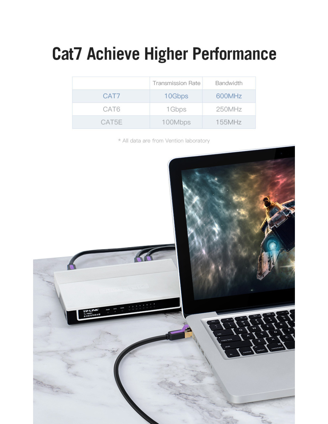Vention Cable de Red RJ45 SFTP ICDBF Cat7  1m  Negro