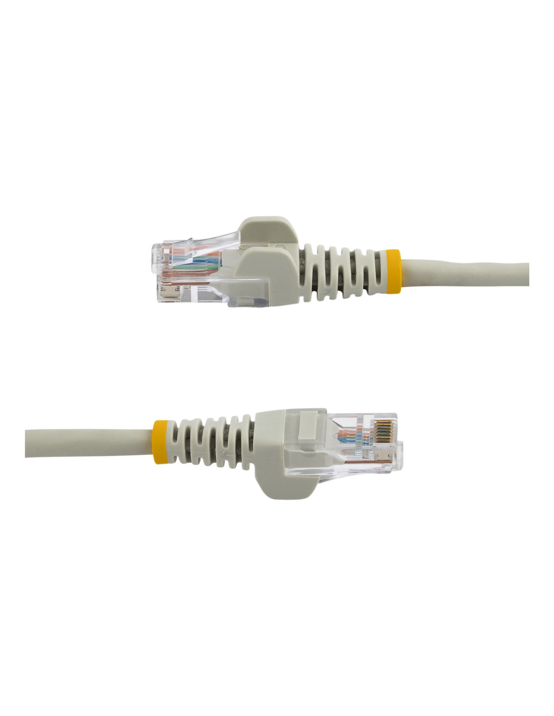 Este cable Cat5e de 5 metros cumple o sobrepasa todas las especificaciones sobre los cables de categoría 5e, para ofrecer conexiones de red Ethernet fiables. Además, el cable tiene un duradero recubrimiento PVC de color gris que permite codificar mediante el color los cables de su red, según sea necesario. Los clips RJ45 Snagless (a prueba de enganches) protegen las conexiones de red Para facilitar la instalación de los cables, los conectores a prueba de enganche ("Snagless") protegen los clips RJ45 del cable durante la instalación, lo cual evita enganches o daños. Esto garantiza una conexión resistente, ya que se evita que el cable se suelte del conector. El cable tiene revestimiento moldeado que reduce la tensión en los puntos de terminación de los conectores RJ45, lo cual evita que el cable se doble en ángulos agudos y, a su vez, evita daños en el cable que puedan causar una disminución del rendimiento de la red. 100% de cobre: valor de calidad excepcional Nuestros cables Cat5e ofrecen la mayor rentabilidad, ya que están fabricados con conductores de cobre de la más alta calidad. Alambre de 0,25mm² para una conexión de red de alto rendimiento Asegure una capacidad de alto rendimiento para sus aplicaciones Ethernet, como PoE ("Power-over-Ethernet"; alimentación a través de Ethernet), mediante cables con cobre de 0,25mm². Conectores de oro de 50 micrones que permiten máxima conductividad Confíe en nuestros conectores RJ45 que ofrecen óptima conductividad sin pérdida de la señal debida a la oxidación o la corrosión.