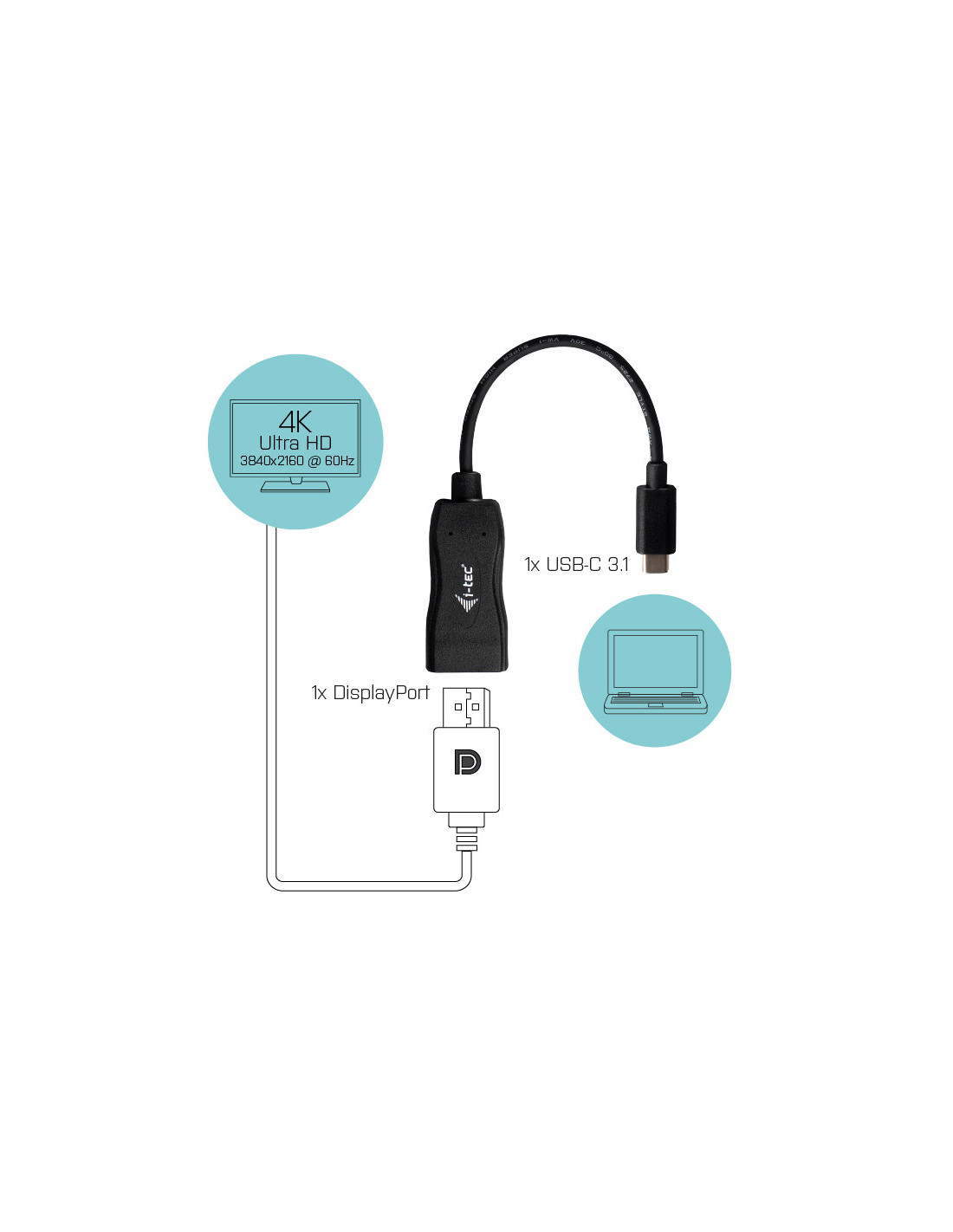 Descripción del producto largo: i-tec USB-C para Display Port adaptador 60 Hz, 1x Display Port 4K Ultra HD, compatible con Thunderbolt 3