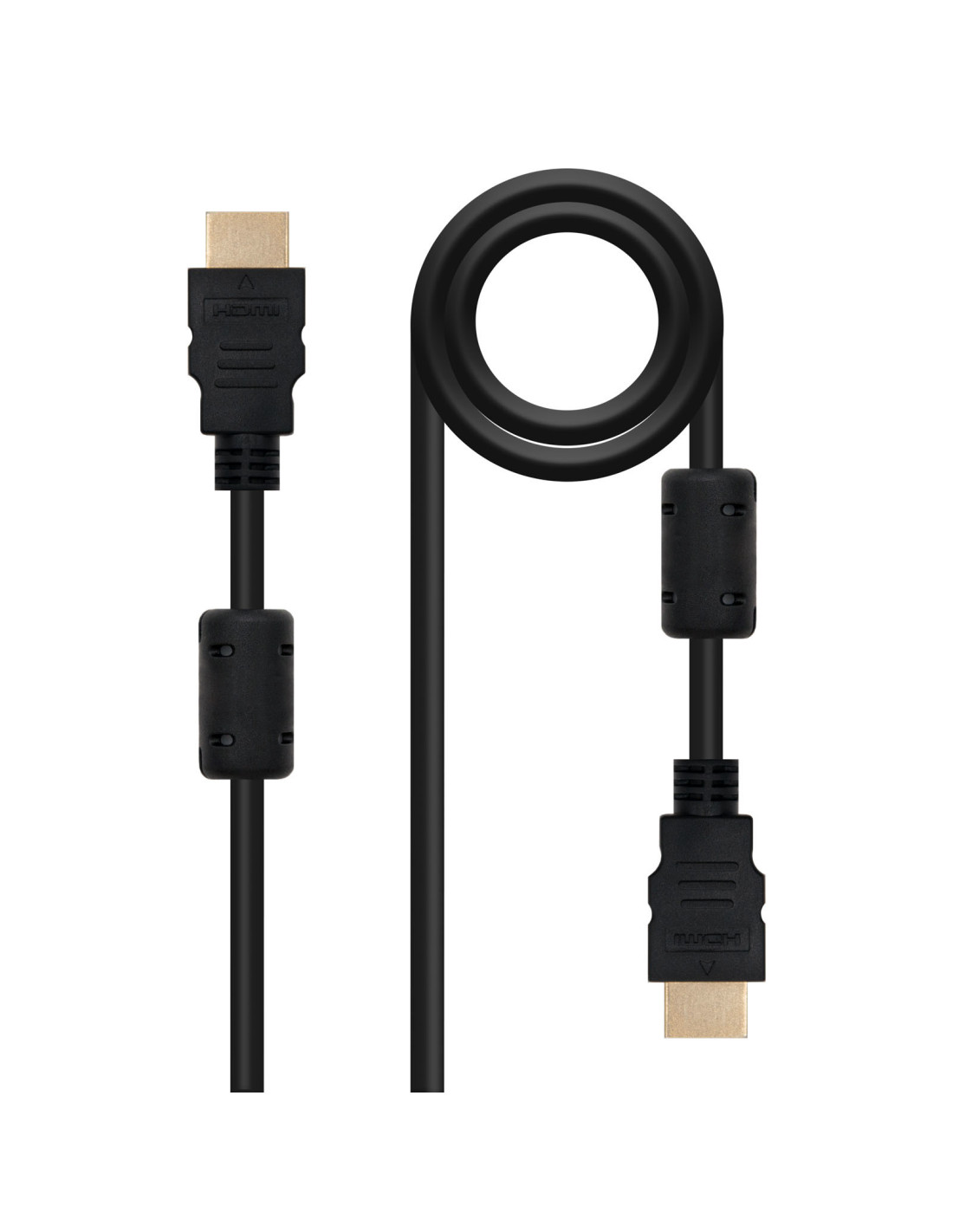 - Cable HDMI V1.3b y full 1080P(categoría 2) de resolución tipo A macho en ambos extremos. Doble ferrita para evitar pérdidas de datos e interferencias electromagnéticas (EMI)