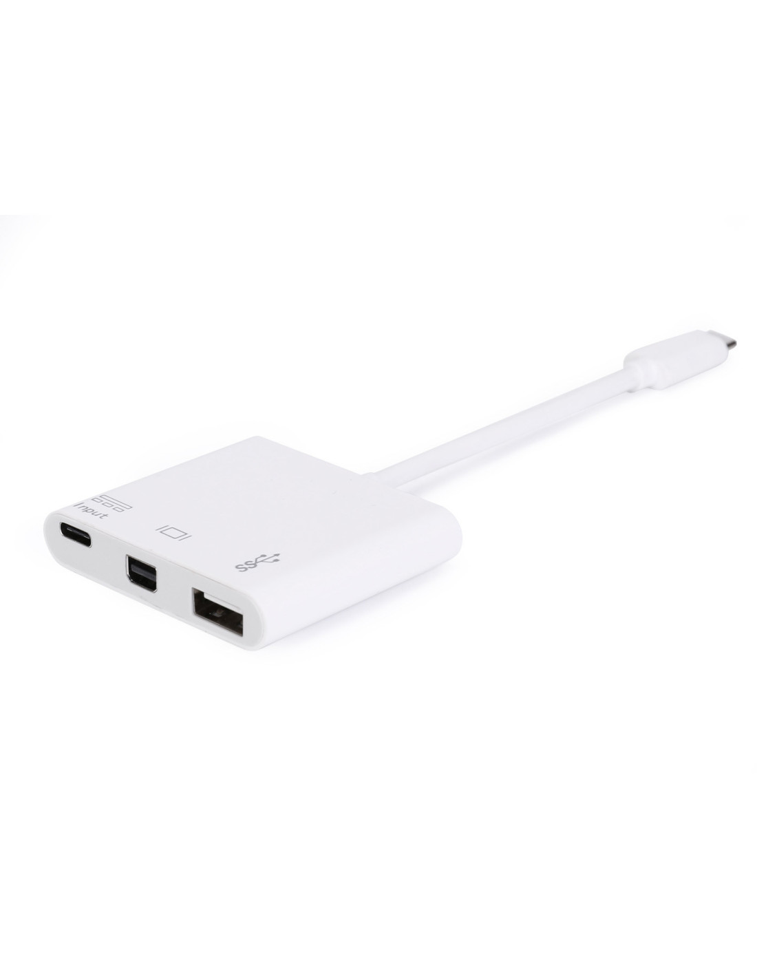 Equip Adaptador USB-C a Mini DisPlayPort, USB-A , USB 60W PD. Interfaz de host: USB 3.2 Gen 1 (3.1 Gen 1) Type-C. Color del producto: Blanco, Interfaces de concentradores: Mini DisplayPort, USB 3.2 Gen 1 (3.1 Gen 1) Type-A, USB 3.2 Gen 1 (3.1 Gen 1) Type-C, Material de la carcasa: Plástico. Ancho: 75 mm, Profundidad: 15 mm, Altura: 150 mm. Ancho del paquete: 105 mm, Profundidad del paquete: 27 mm, Altura del paquete: 215 mm. Cantidad por caja: 120 pieza(s), Ancho de la caja principal: 470 mm, Longitud de la caja: 400 mm