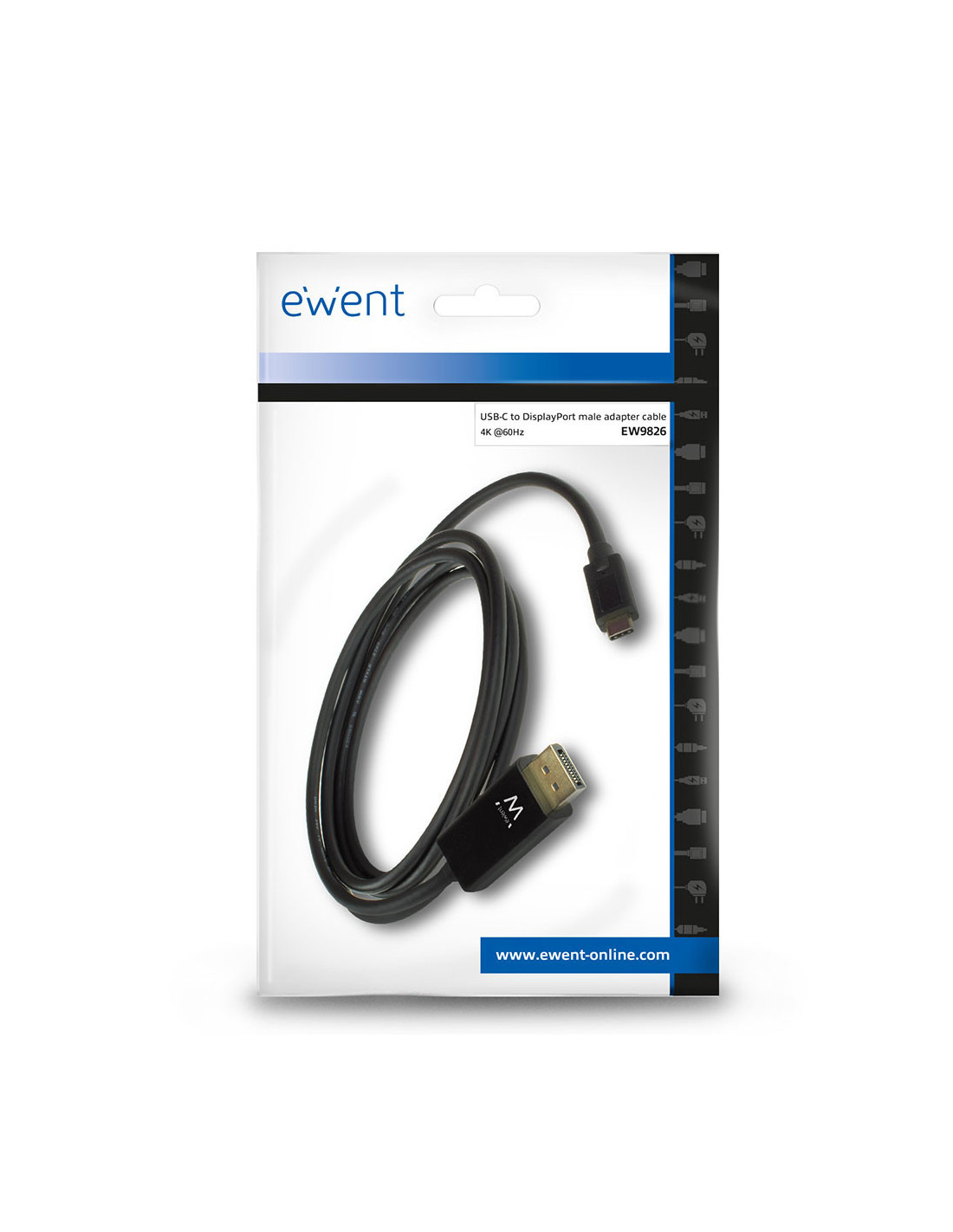 Ewent EW9826. Longitud de cable: 2 m, Conector 1: USB Tipo C, Conector 2: DisplayPort. Tipo de embalaje: Bolsa de plástico. Cantidad por paquete: 1 pieza(s)