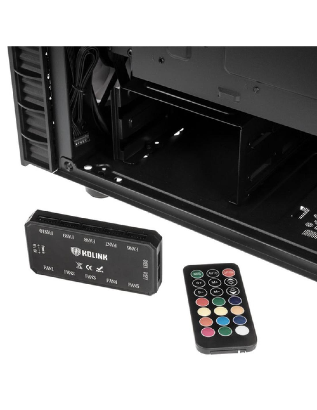 Kolink Observatory Lite . Factor de forma: Midi Tower, Tipo: PC, Color del producto: Negro. Ubicación de fuente de alimentación: Fondo. Ventiladores frontales instalados: 3x 120 mm, Diámetro de ventiladores frontales soportados: 120 mm, Ventiladores traseros instalados: 1x 120 mm. Tamaños de disco duro soportados: 2.5,3.5". Ancho: 190 mm, Profundidad: 400 mm, Altura: 440 mm