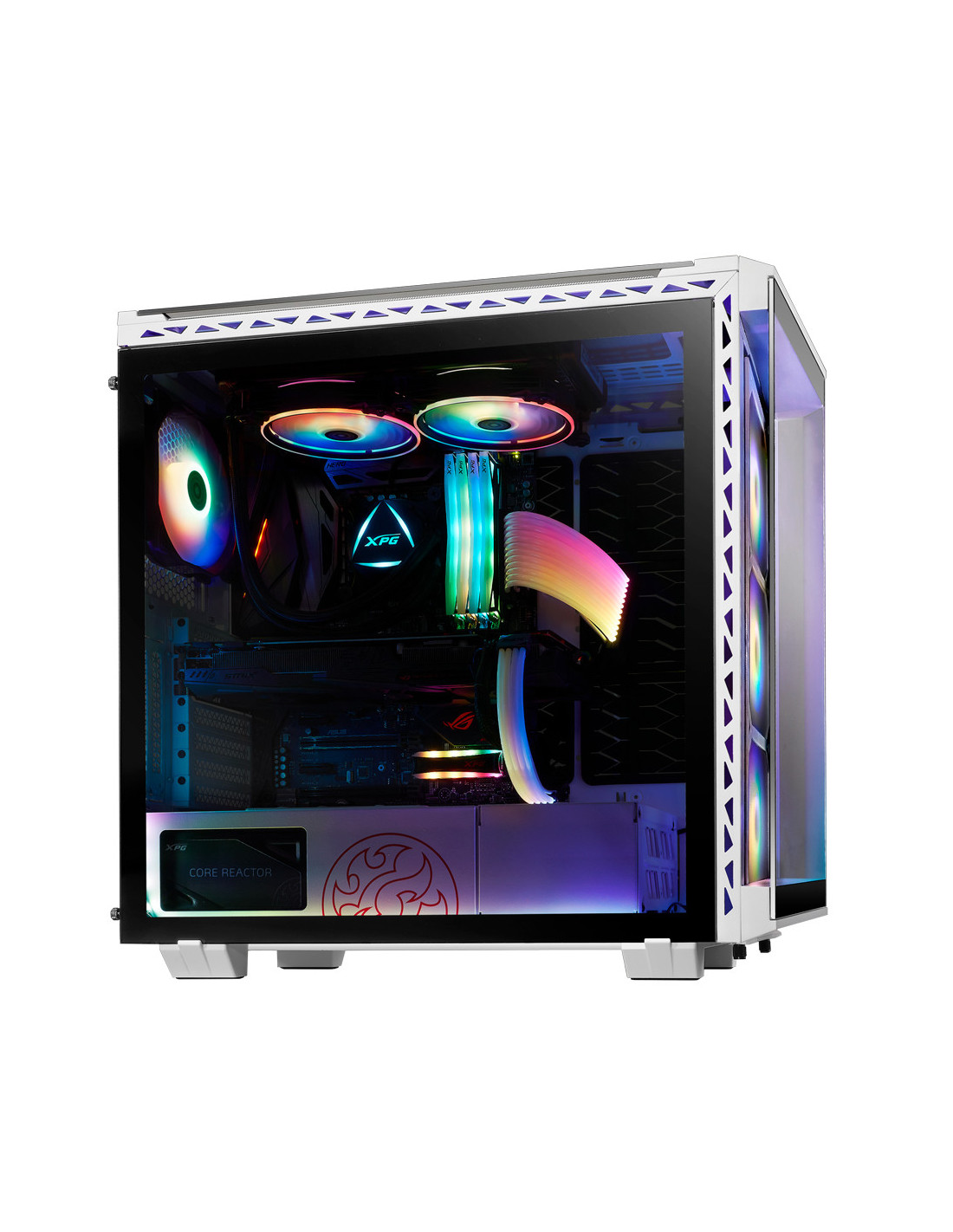 Fabricado con metal resistente y cristal templado en cuatro lados, el XPG BATTLECRUISER es un superchasis de media torre de aspecto épico. Mejorado con cuatro ventiladores ARGB preinstalados con 13 modos de iluminación, incluyendo el modo Music Sync*.