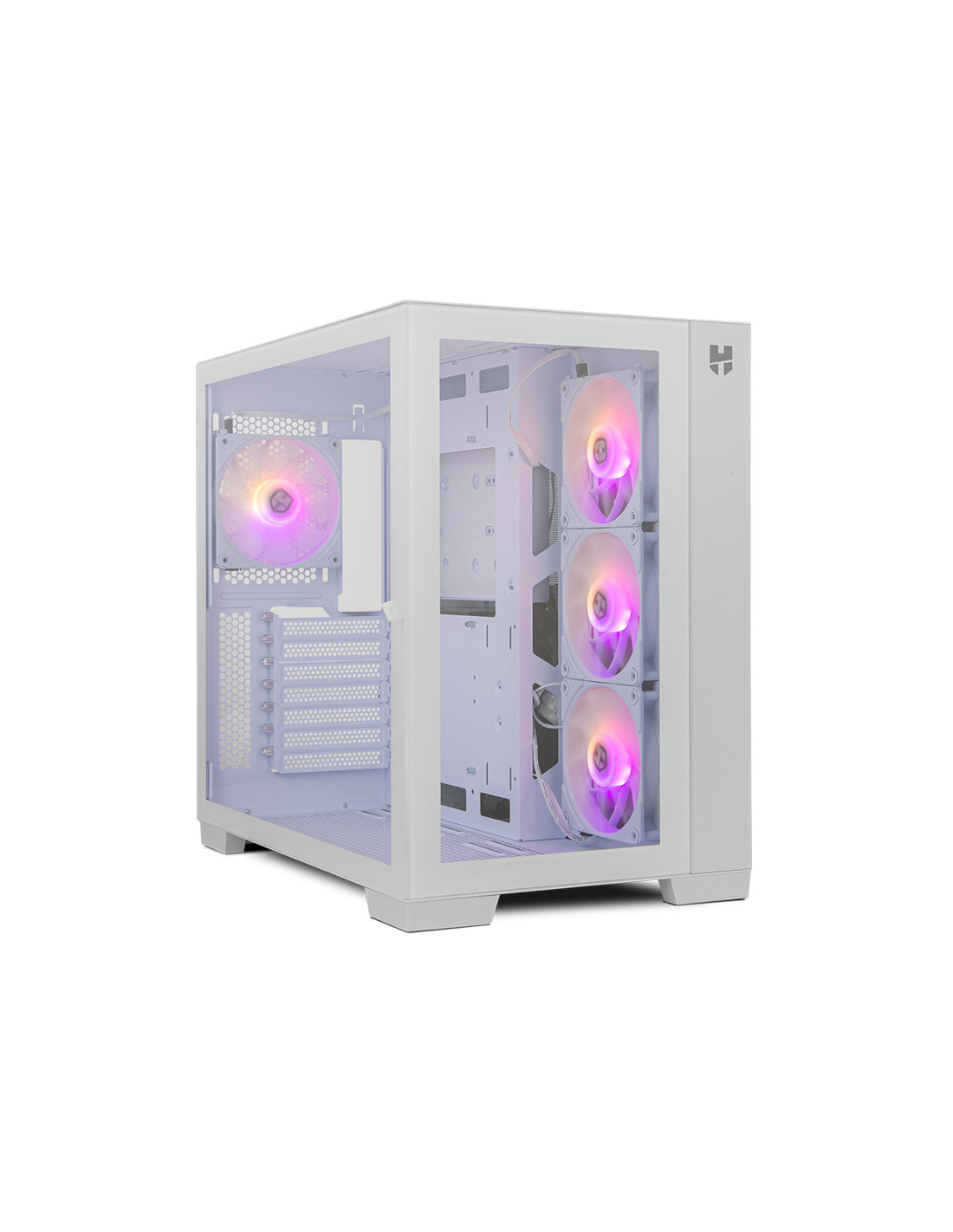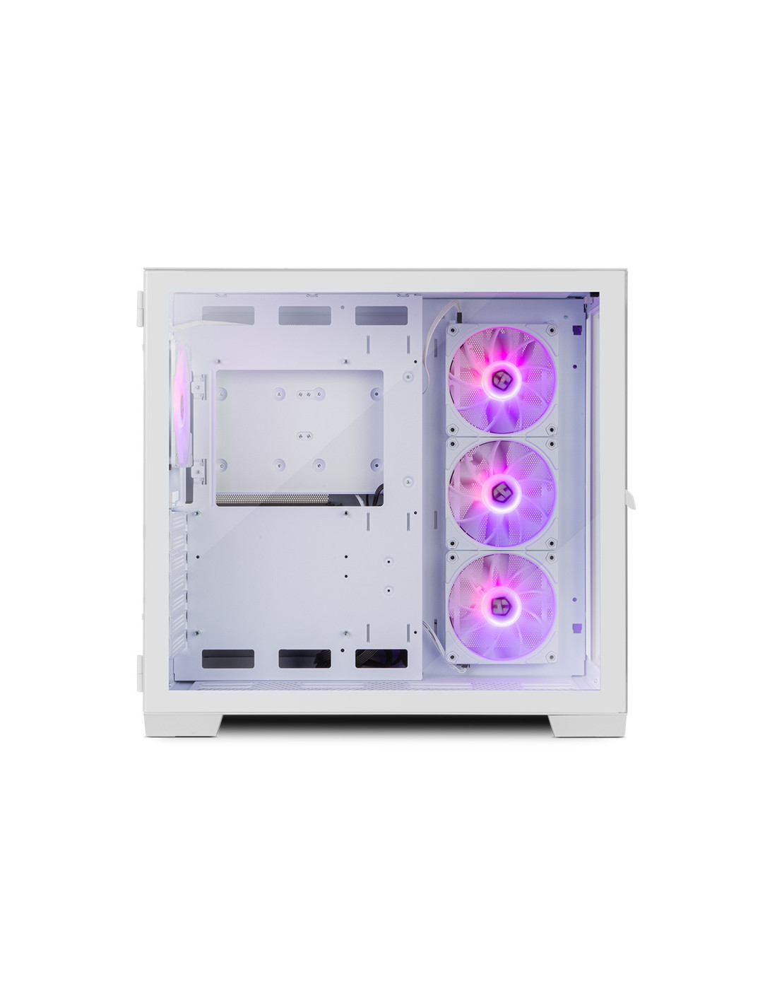 Disponible en dos colores, blanco o negro, con una impresionante estética, la Nox Hummer Astra presenta un diseño gaming minimalista. Experimenta un espectáculo visual de máximo nivel con sus doble cristal templado, uno en su frontal y otro en el lateral, quedando la configuración totalmente a la vista, disfrutando como nunca de la iluminación ARGB, gracias al controlador ARGB con mando a distancia que trae incluido.