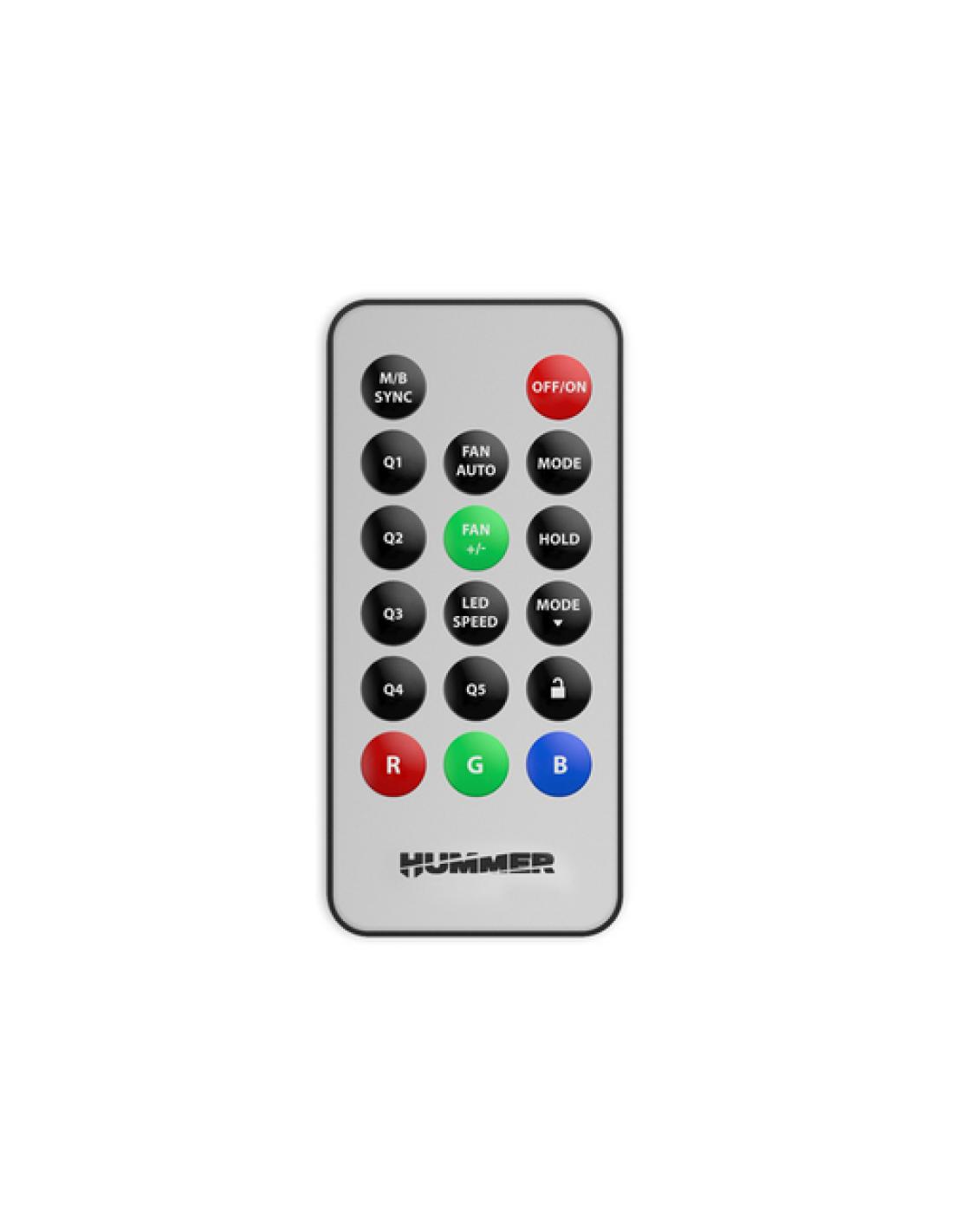 Podrás instalar hasta diez ventiladores de 120 mm, uno en la parte trasera, tres en la zona lateral, tres en zona superior y tres en la zona inferior. Crea la iluminación perfecta para tu setup con el mando a distancia ARGB que incluye este chasis.