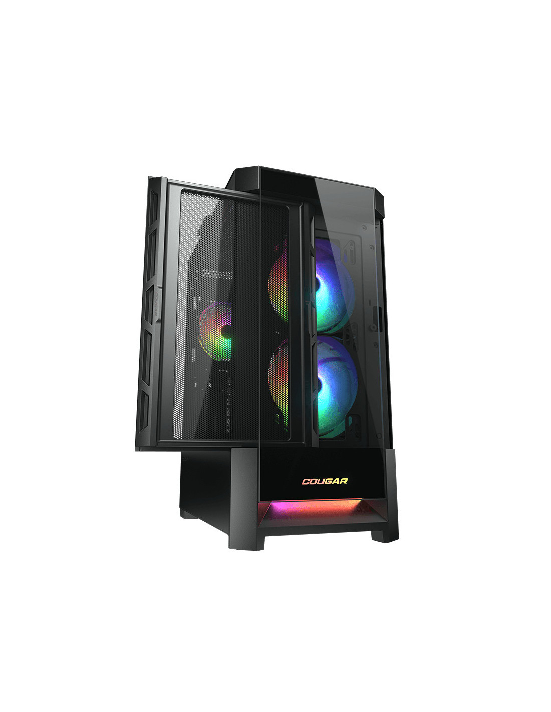 DUOFACE RGBBrillante Escenario de Iluminación y Excelente Rendimiento de RefrigeraciónDuoface RGB es una combinación de elegancia y rendimiento de refrigeración. Con dos paneles frontales distintivos, uno para efectos de iluminación RGB deslumbrantes; el otro para un flujo de aire superior y un rendimiento de refrigeración optimizado. Además, también incluye dos enormes ventiladores ARGB de 140 mm, otro de 120 mm y un logotipo resaltado para ofrecerte un control avanzado de la iluminación. Duoface RGB es todo un diseño de torre media de 230mm que ofrece abundante espacio para el refrigerador de la CPU, gestión de cables, compatibilidad para una placa base E-ATX y tarjetas gráficas de gama alta de hasta 330mm. Es una mejora en todos los aspectos en comparación con gabinetes para juegos previos.