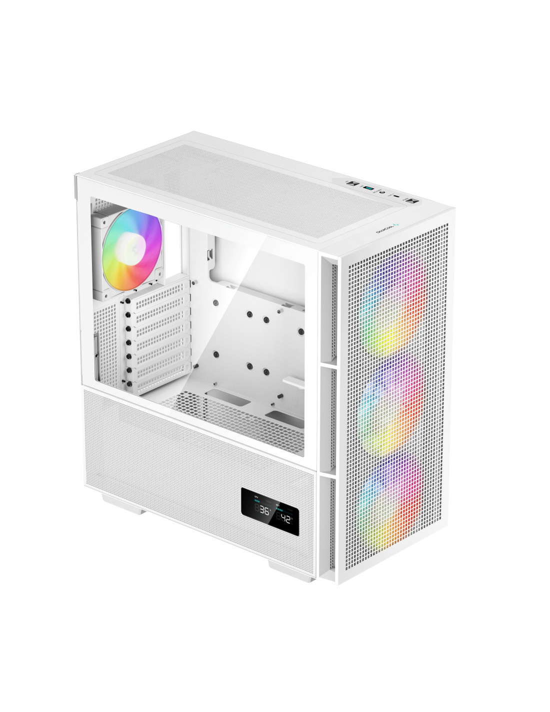 DeepCool CH560 DIGITAL WH. Factor de forma: Midi Tower, Tipo: PC, Color del producto: Blanco. Ubicación de fuente de alimentación: Fondo, Factores de forma de la fuente de alimentación compatibles: ATX, PS2. Ventiladores frontales instalados: 3x 140 mm, Diámetro de ventiladores frontales soportados: 120,140 mm, Ventiladores traseros instalados: 1x 120 mm. Tamaños de disco duro soportados: 2.5,3.5". Ancho: 230 mm, Profundidad: 458 mm, Altura: 471 mm