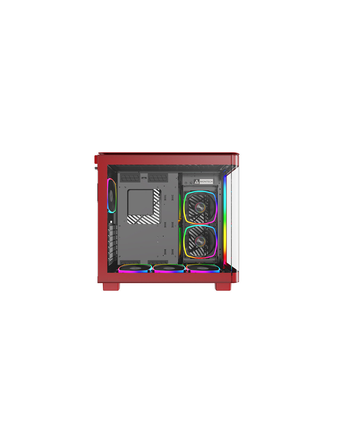 Montech KING 95 PRO. Factor de forma: Midi Tower, Tipo: PC, Color del producto: Rojo. Ventiladores laterales instalados: 2x 140 mm, Diámetro de ventiladores secundarios soportados: 140,120 mm, Ventiladores traseros instalados: 1x 120 mm. Tamaños de disco duro soportados: 2.5,3.5". Ancho: 300 mm, Profundidad: 475 mm, Altura: 442 mm