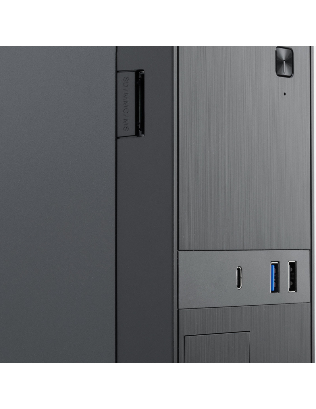 CoolBox CAJA MATX SLIM T310 USB-C 3.2 GEN1 + MULTILECTOR SD FTE 300SBZ 80+BRONZE. Factor de forma: Micro Torre, Tipo: PC, Color del producto: Negro. Fuente de alimentación: 300 W, Ubicación de fuente de alimentación: Superior. Diámetro de ventiladores secundarios soportados: 80 mm. Tamaños de disco duro soportados: 2.5,3.5", Tarjetas de memoria compatibles: SD. Ancho: 100 mm, Profundidad: 410 mm, Altura: 315 mm