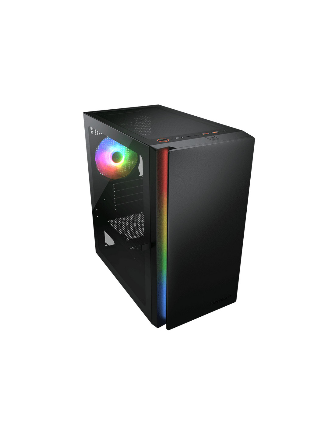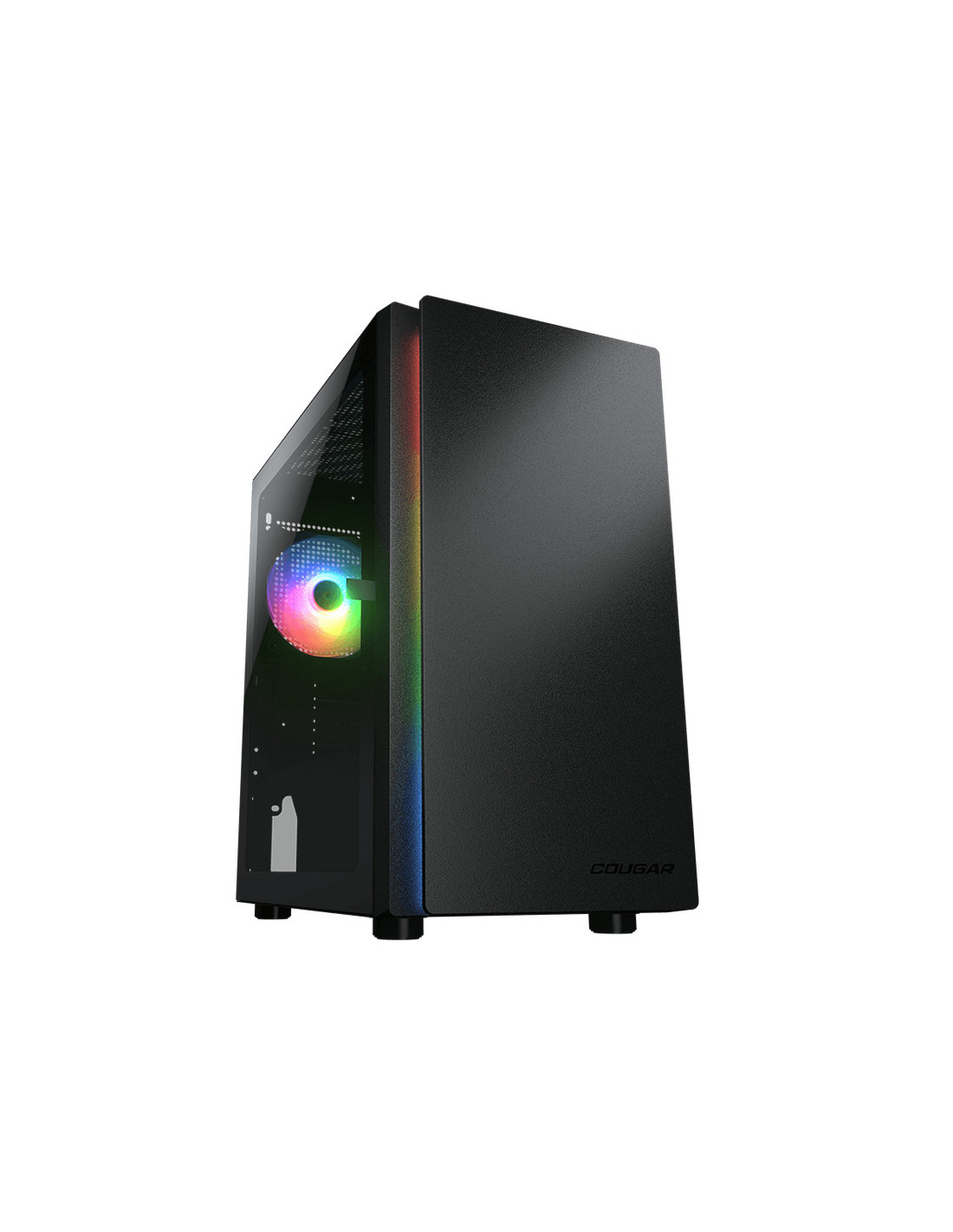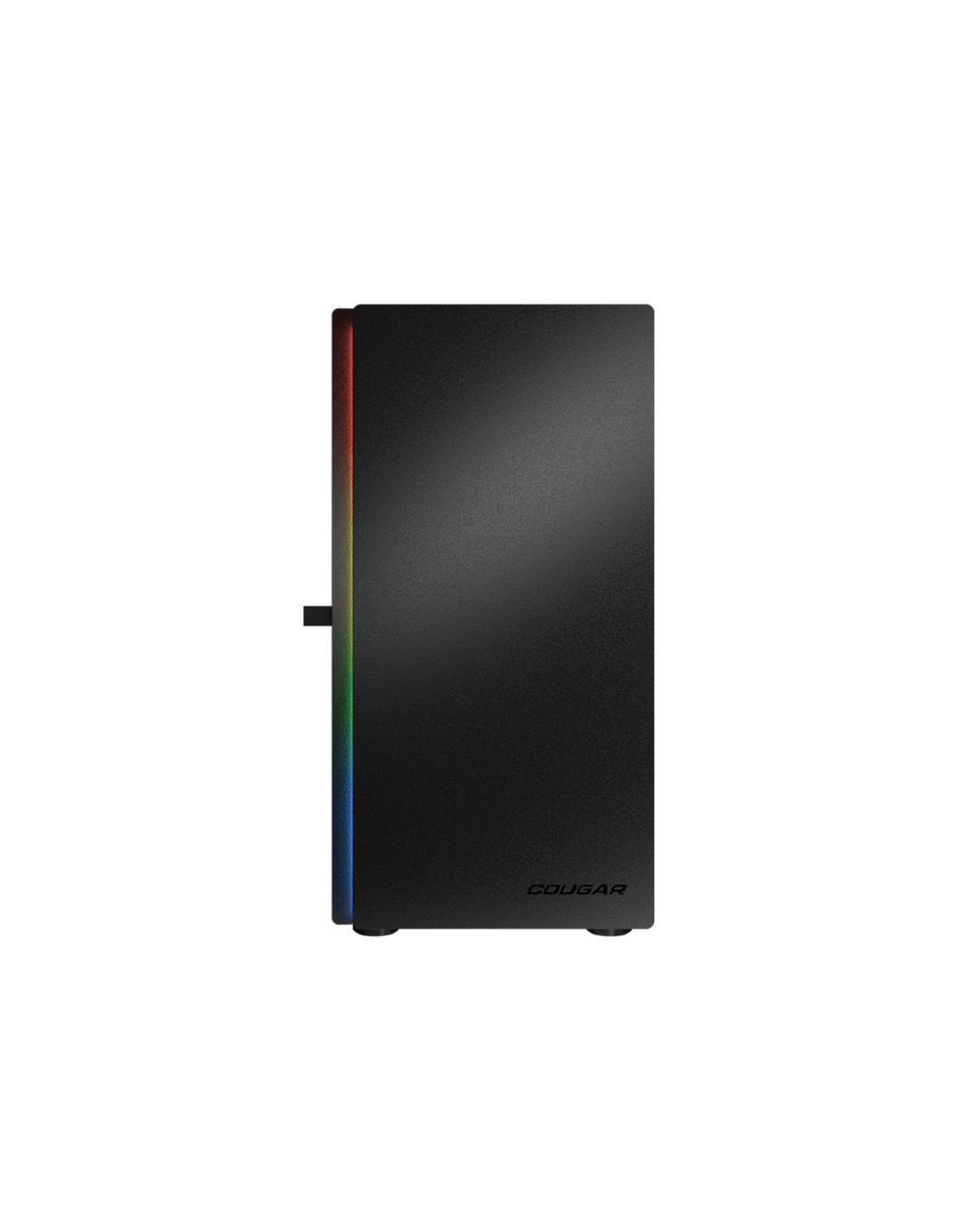 COUGAR PURITY RGB. Factor de forma: Mini Tower, Tipo: PC, Color del producto: Negro. Diámetro de ventiladores frontales soportados: 120 mm, Diámetros de ventiladores superiores soportados: 120 mm, Diámetro de ventiladores inferiores secundarios soportados: 120 mm. Tamaños de disco duro soportados: 2.5,3.5". Ancho: 200 mm, Profundidad: 360 mm, Altura: 392 mm
