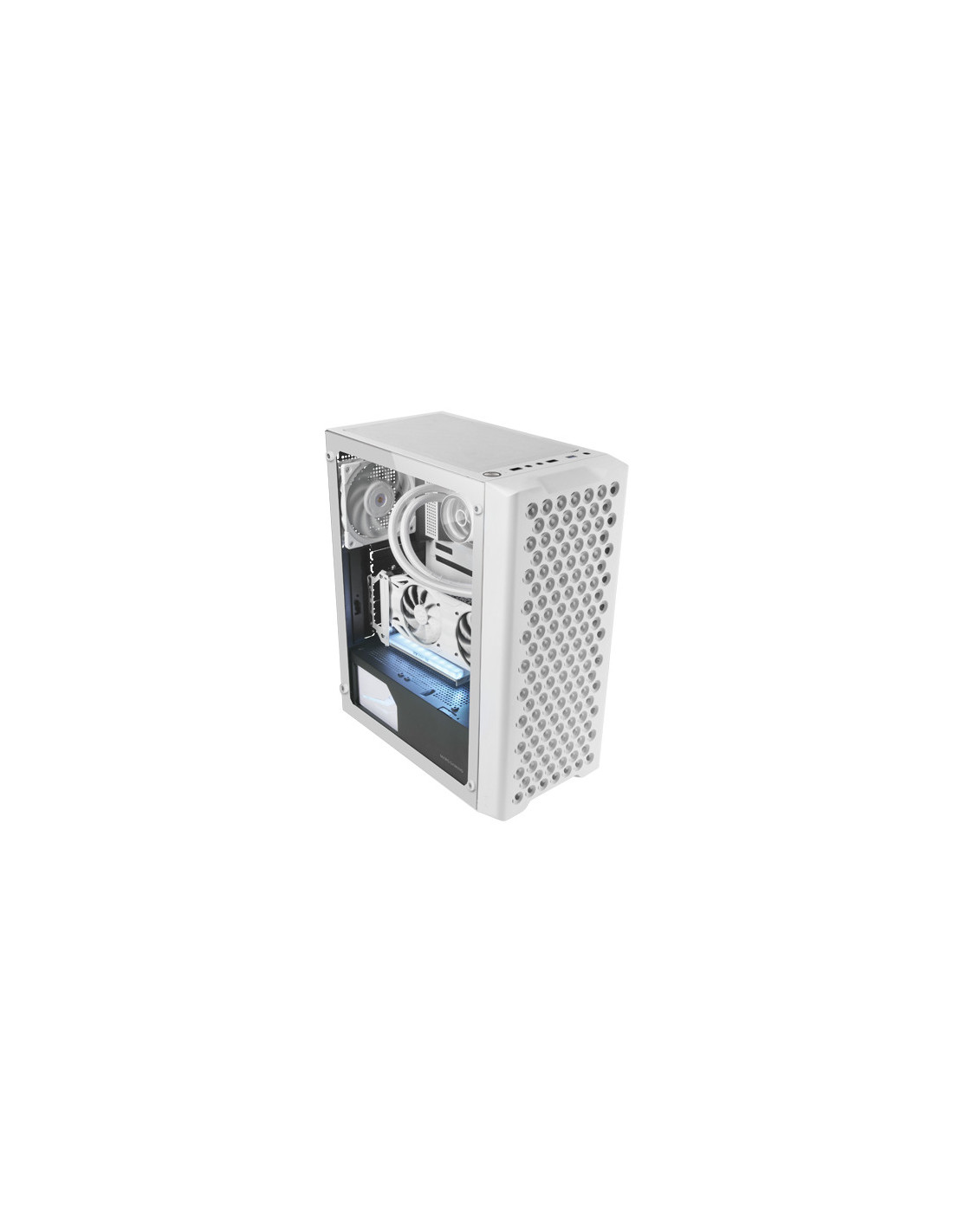 La MC-iPRO cuenta con una llamativa rejilla metálica frontal de diseño tridimensional, concebida para mejorar el flujo de aire hacia los componentes críticos de tu sistema. Combinada con la ventana lateral de cristal templado, la MC-iPRO es una maravilla del diseño que mantiene tu sistema a temperaturas óptimas con un aspecto impresionante.