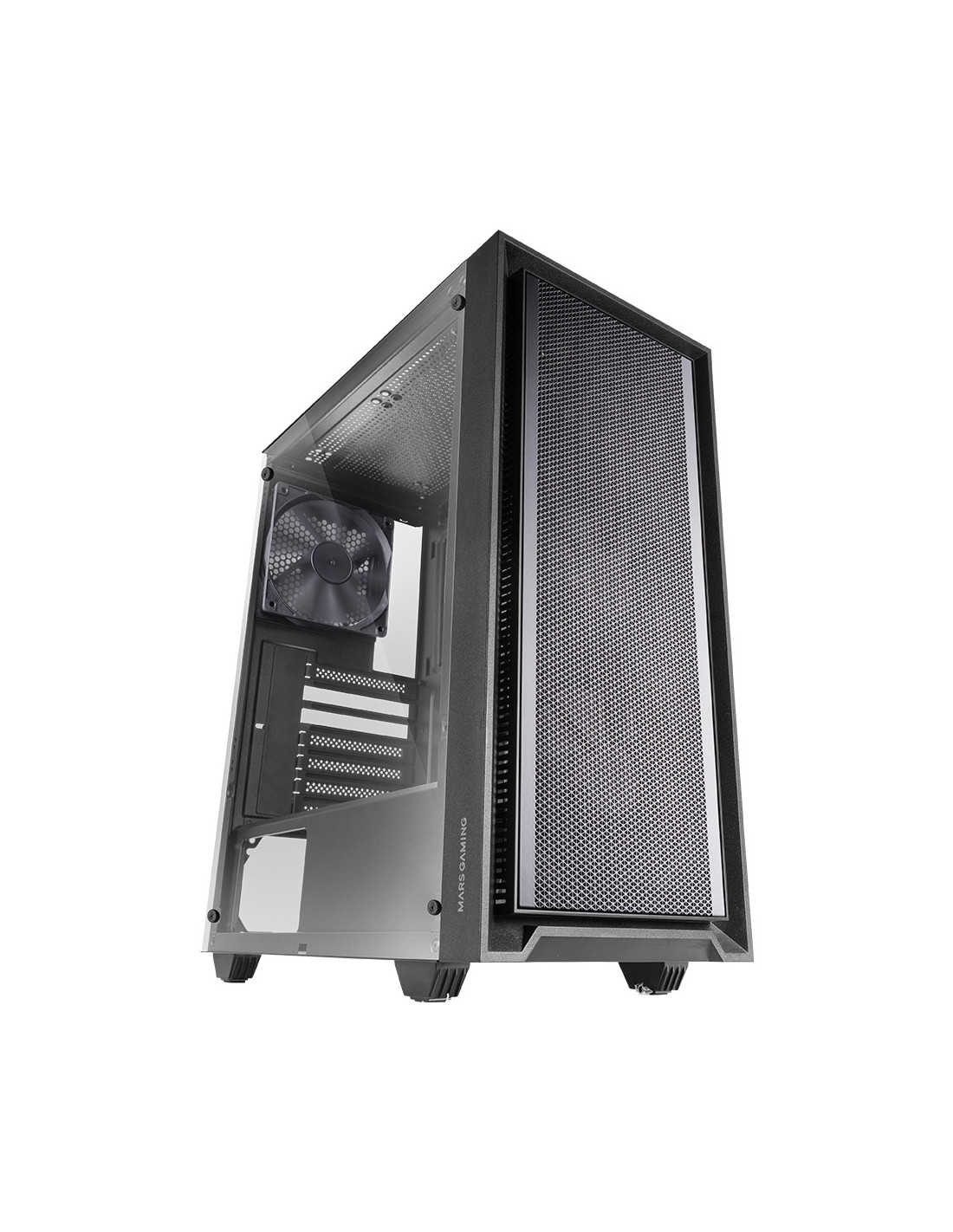 DISEÑO PROFESIONAL MESHCon su diseño profesional pure black, el chasis MC-PMAX combina rendimiento y estilo con un frontal MESH y aperturas laterales que maximizan el flujo de aire, garantizando una refrigeración eficiente para tus componentes. Además, su ventana lateral completa de cristal templado ofrece una vista perfecta de tu configuración, permitiéndote exhibir tu equipo con estilo. Su estética profesional combina a la perfección con cualquier setup, ofreciendo un rendimiento superior y un estilo sofisticado.