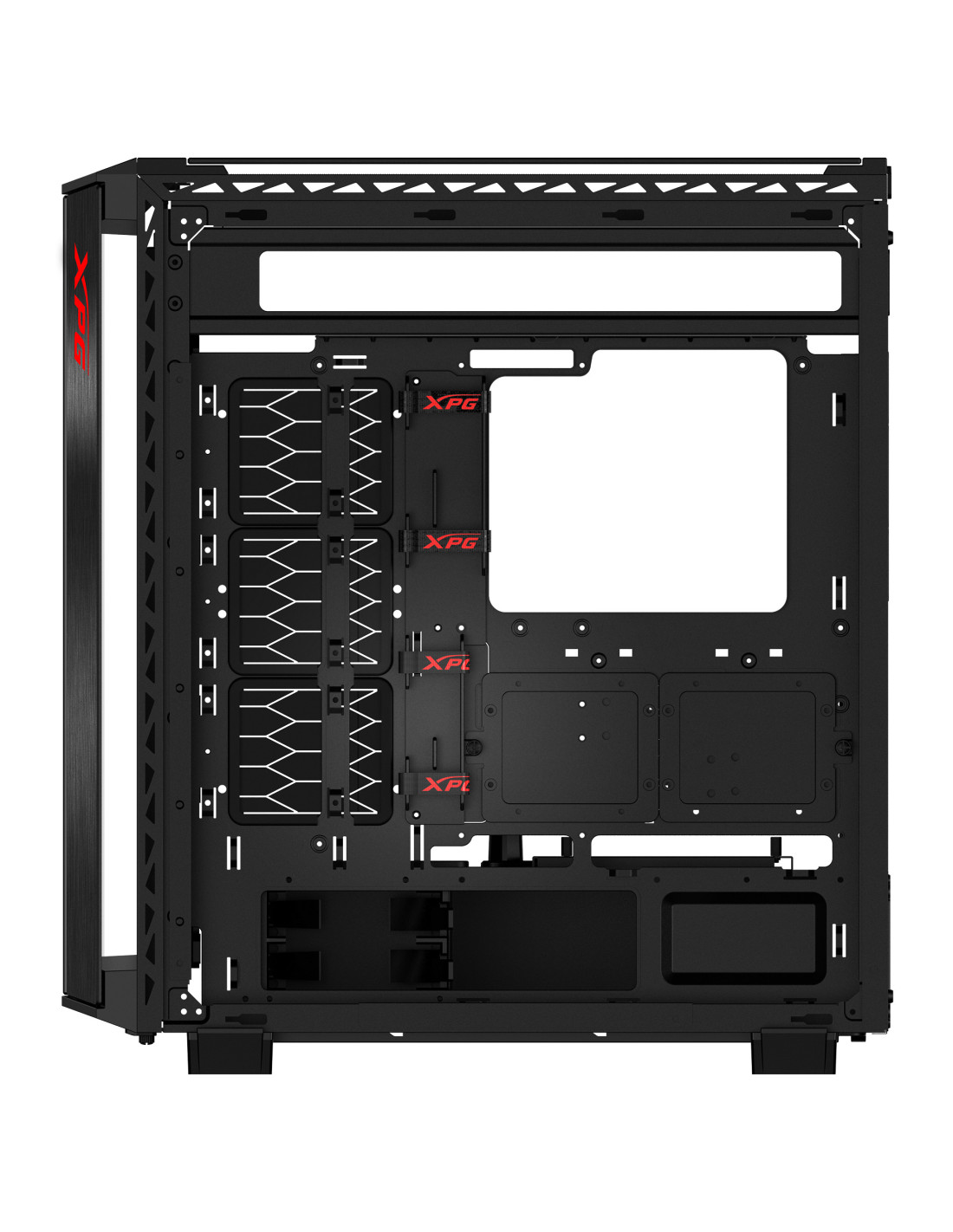 Flujo de Aire Optimizado y Eficiencia de Enfriamiento XtremaDisfrute de las características de enfriamiento excepcionales de BATTLECRUISER II, que ostenta una estructura de alto flujo de aire, cuatro ventiladores ARGB de 120 mm y soporte para un radiador de hasta 420 mm en la parte frontal del chasis.