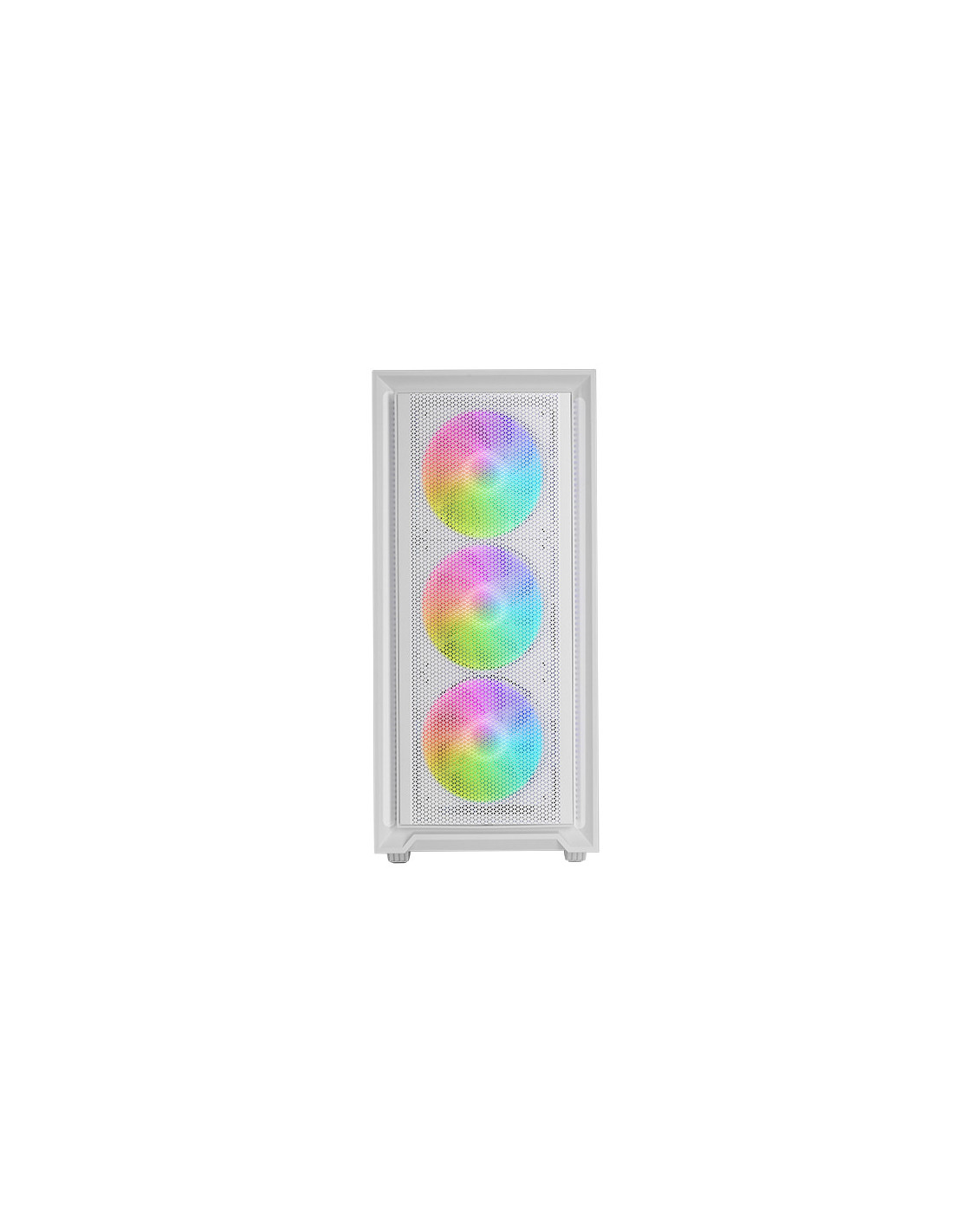 La caja MC-AIR combina alto rendimiento y diseño con su elegante frontal Mesh y 4 ventiladores FRGB Rainbow de 120mm preinstalados (3 en el panel frontal y 1 en la parte trasera). Su ventana lateral de cristal templado permite exhibir tu configuración con estilo, mientras su diseño de doble cámara optimiza el flujo de aire para mantener tus componentes en temperaturas óptimas.