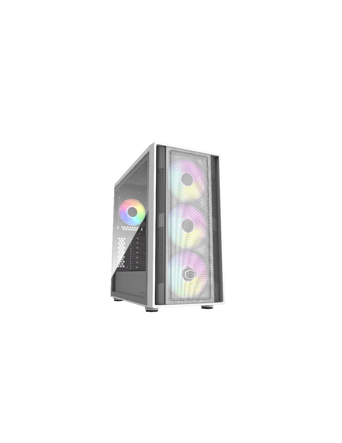 Cooler Master MasterBox 600 White. Factor de forma: Escritorio, Tipo: PC, Color del producto: Blanco. Factores de forma de la fuente de alimentación compatibles: ATX. Ventiladores frontales instalados: 3x 140 mm, Diámetro de ventiladores frontales soportados: 120,140 mm, Ventiladores traseros instalados: 1x 120 mm. Tamaños de disco duro soportados: 2.5,3.5". Ancho: 230 mm, Profundidad: 474 mm, Altura: 481 mm